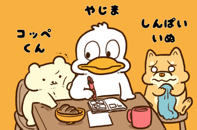 SNSで「コッぺくん」や「しんぱいいぬ」などのマンガを発表しているマンガ家のやじまけんじです。