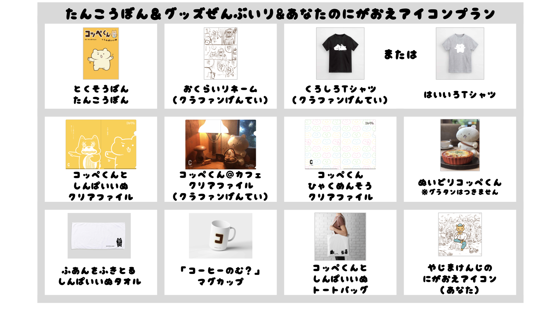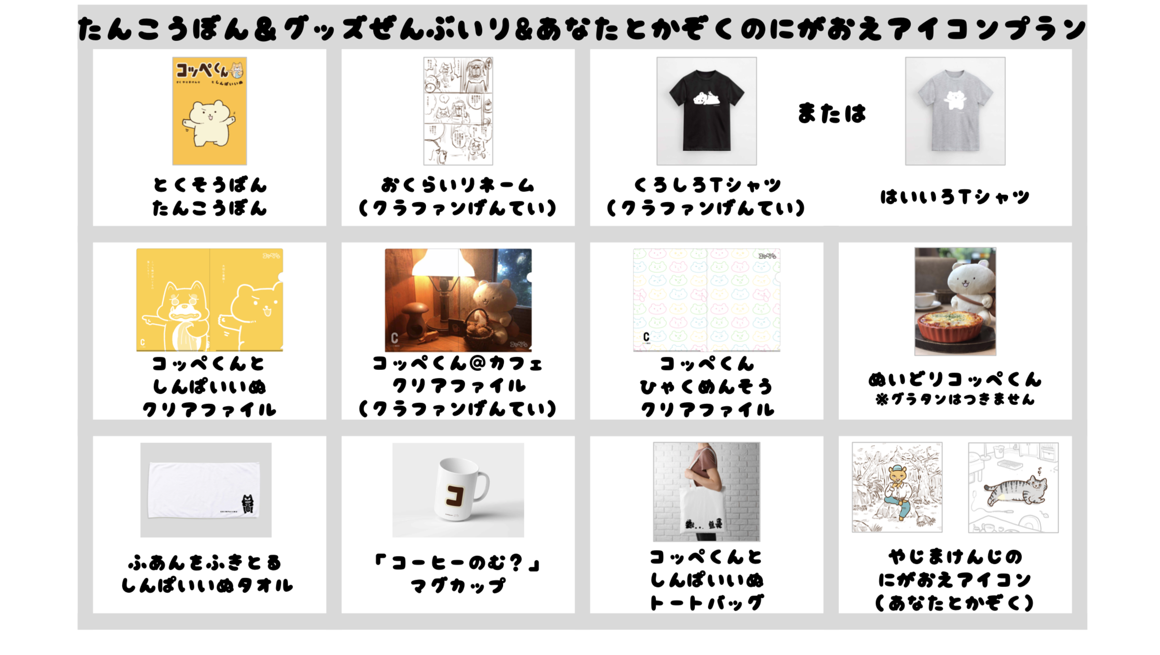 【5. たんこうぼん&グッズぜんぶいり&あなたのにがおえアイコンプラン:40,000円 (税込、送料込、20名)】