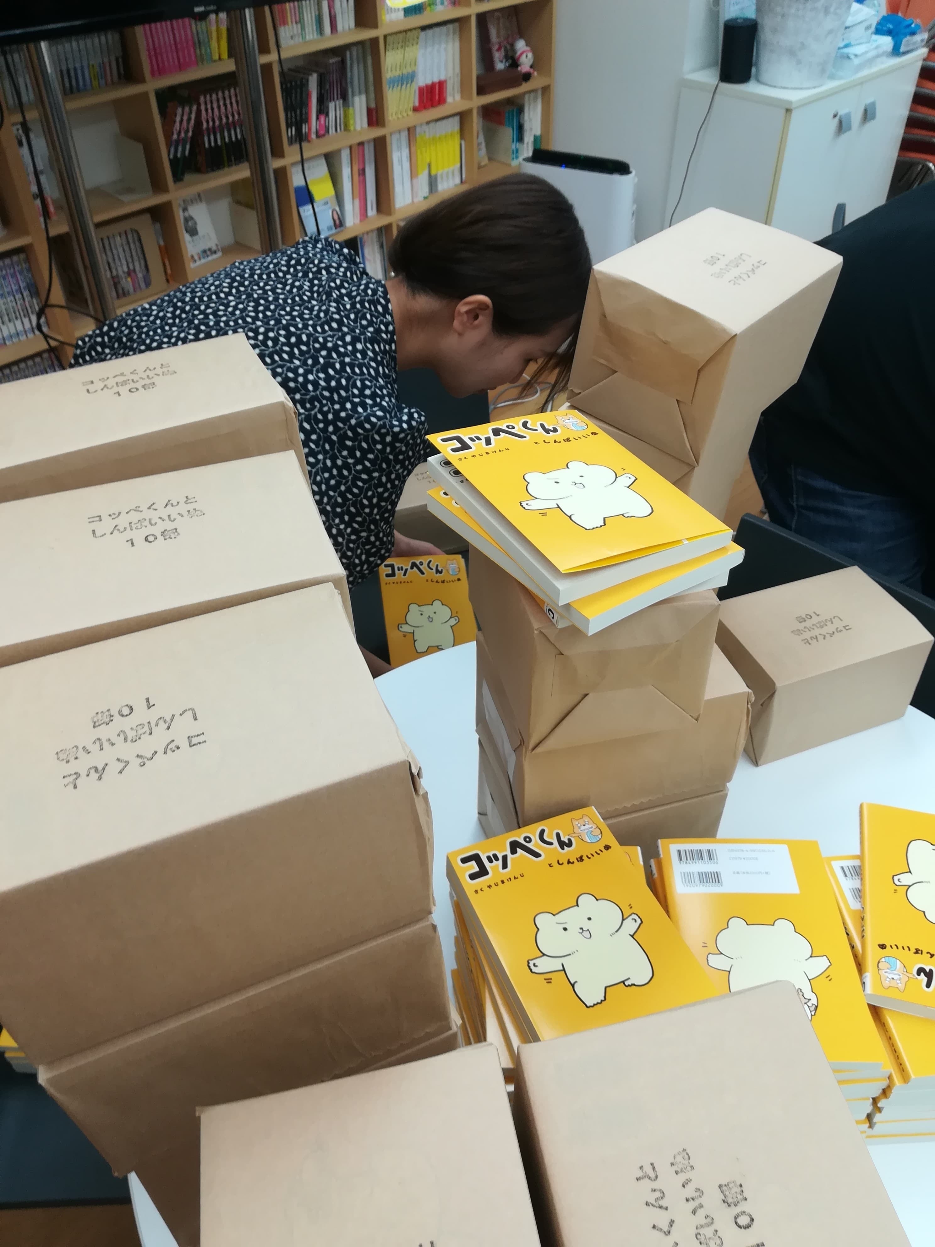 2019/08/24 16:09すっかりご無沙汰しておりましたが、第2回です!ついに「コッペくんとしんぱいいぬ」が出版社のコルクさんのオフィスに届きました!これから皆さんのお名前を心を込めて書き入れていきます〜!次回の活動報告をお楽しみに♪ もっと見る