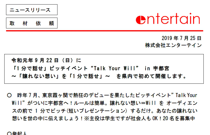 掲載依頼を書いた文章と、イベントの趣旨を書いた添付資料を印刷して下野新聞の本社へ伺い…窓口へ渡すだけです。