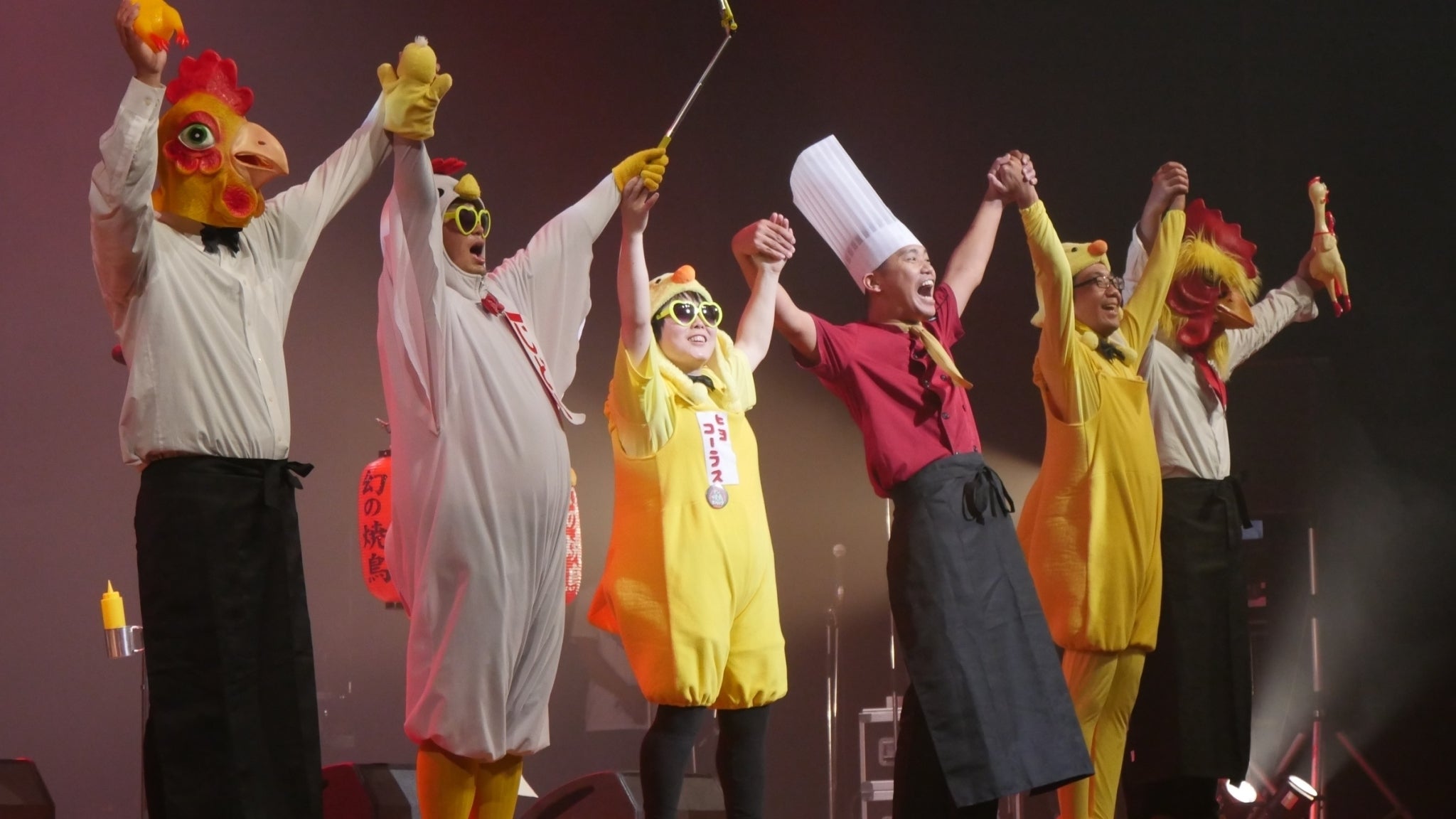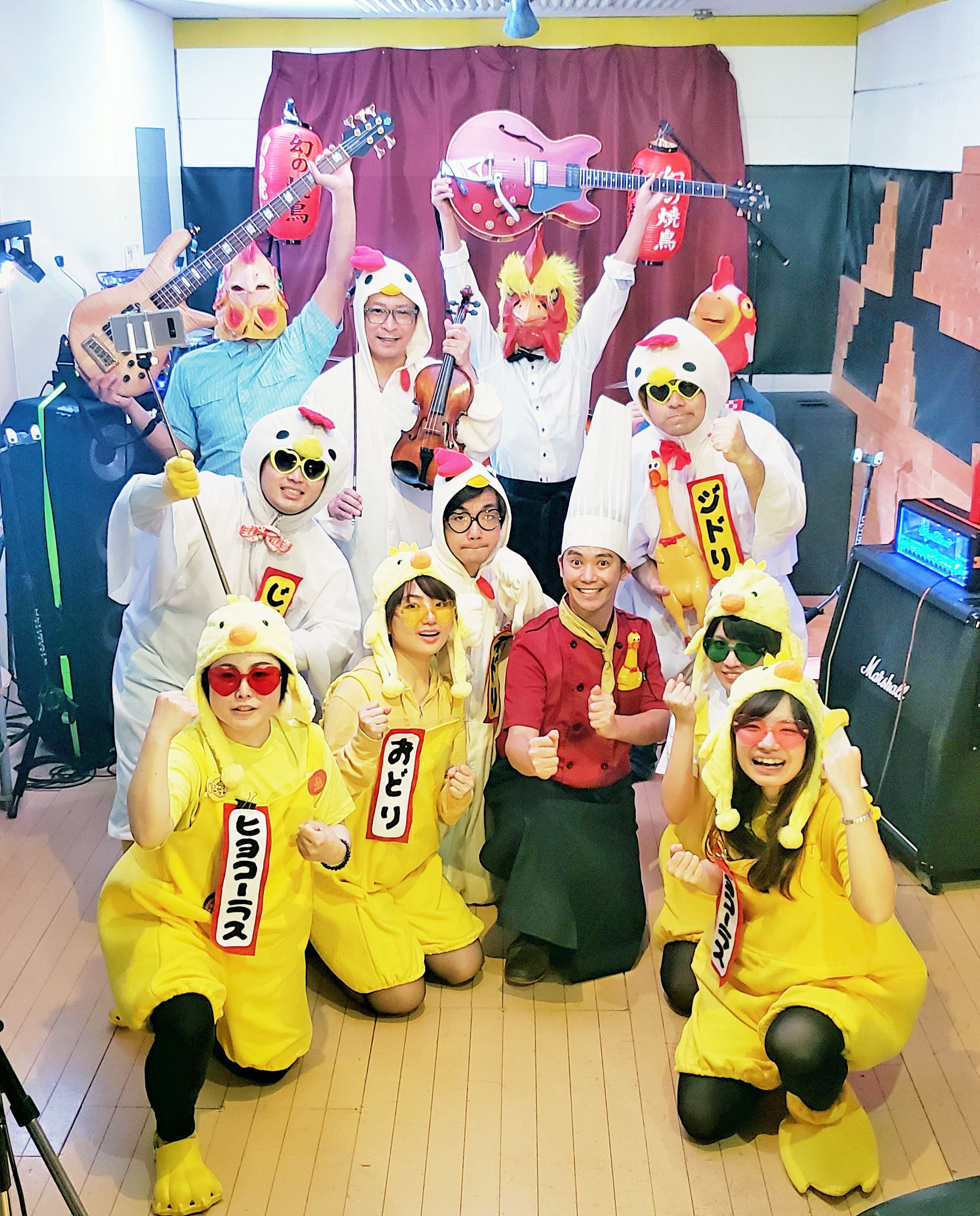 やきとりをテーマにした楽曲と、シェフやニワトリ&ヒヨコの衣装で地域のお祭りやライブハウスなどで演奏しています。