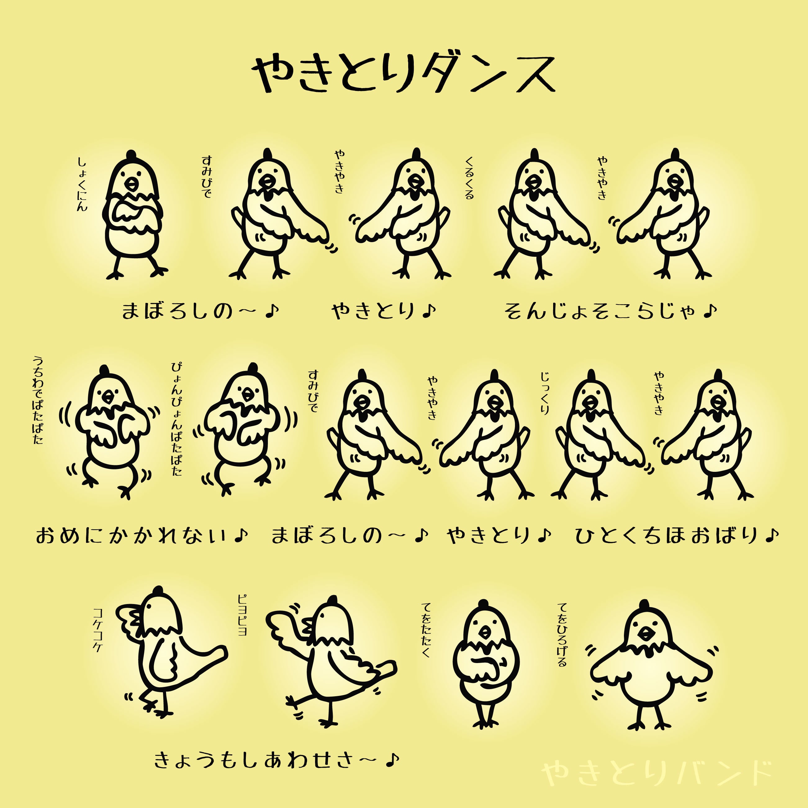 「小さな子ども達でもすぐに真似できる振り付けで一緒に踊ったら、もっとこども達に喜んで貰えるんじゃないか?」と思い、やきとりバンドの曲に振り付けをした「やきとりダンス」を考えました。