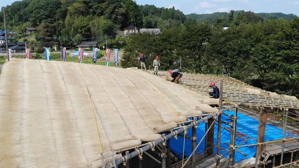 2019/10/06 18:08昨日から屋根を葺き始めました。命綱をつけて高所作業車を使います。今まではこれを保存会だけで行っていましたが、今回からプロの工事業者に委託しています。それも保存会の皆様が高齢化して、作業が難しくなって来たためです。この費用のためのクラウドファンディングでもあります。公演まであと17日。皆様のご協力、心よりお願い申し上げます。当日12時からのNHK水戸のニュースでも放映されました。 もっと見る