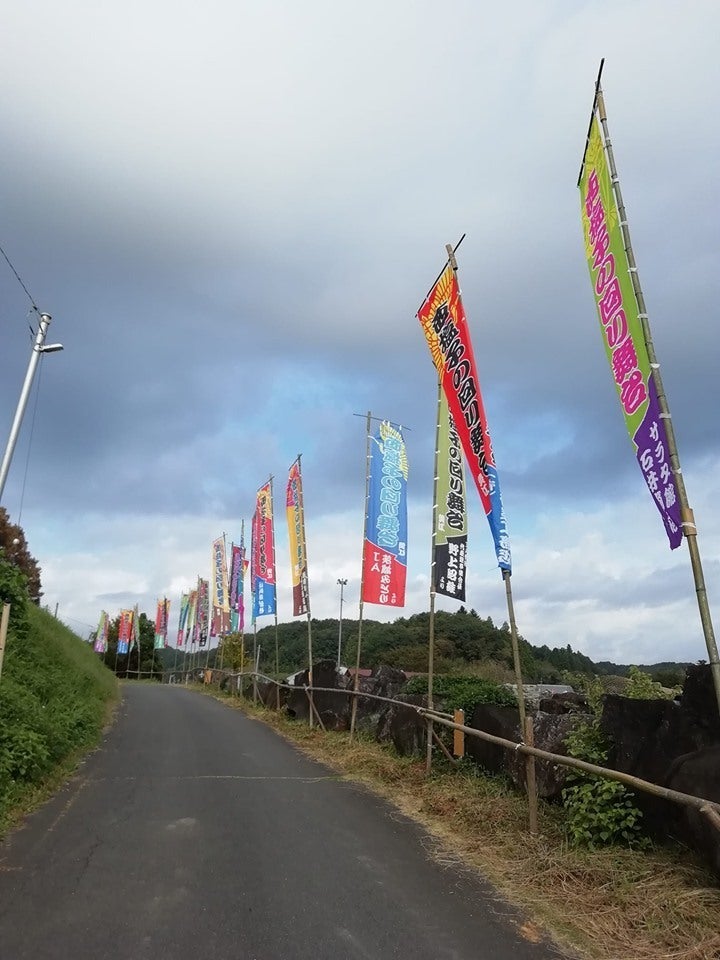 会場の回りにのぼりを立てました。いよいよの雰囲気になってまいりました。