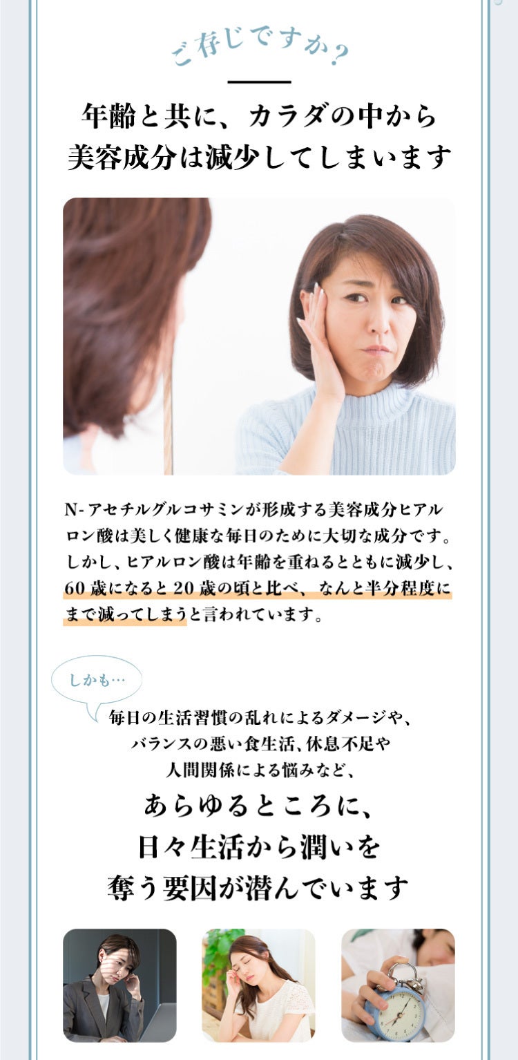 エイジングケア※の秘密、それは「N-アセチルグルコサミン」にありました。