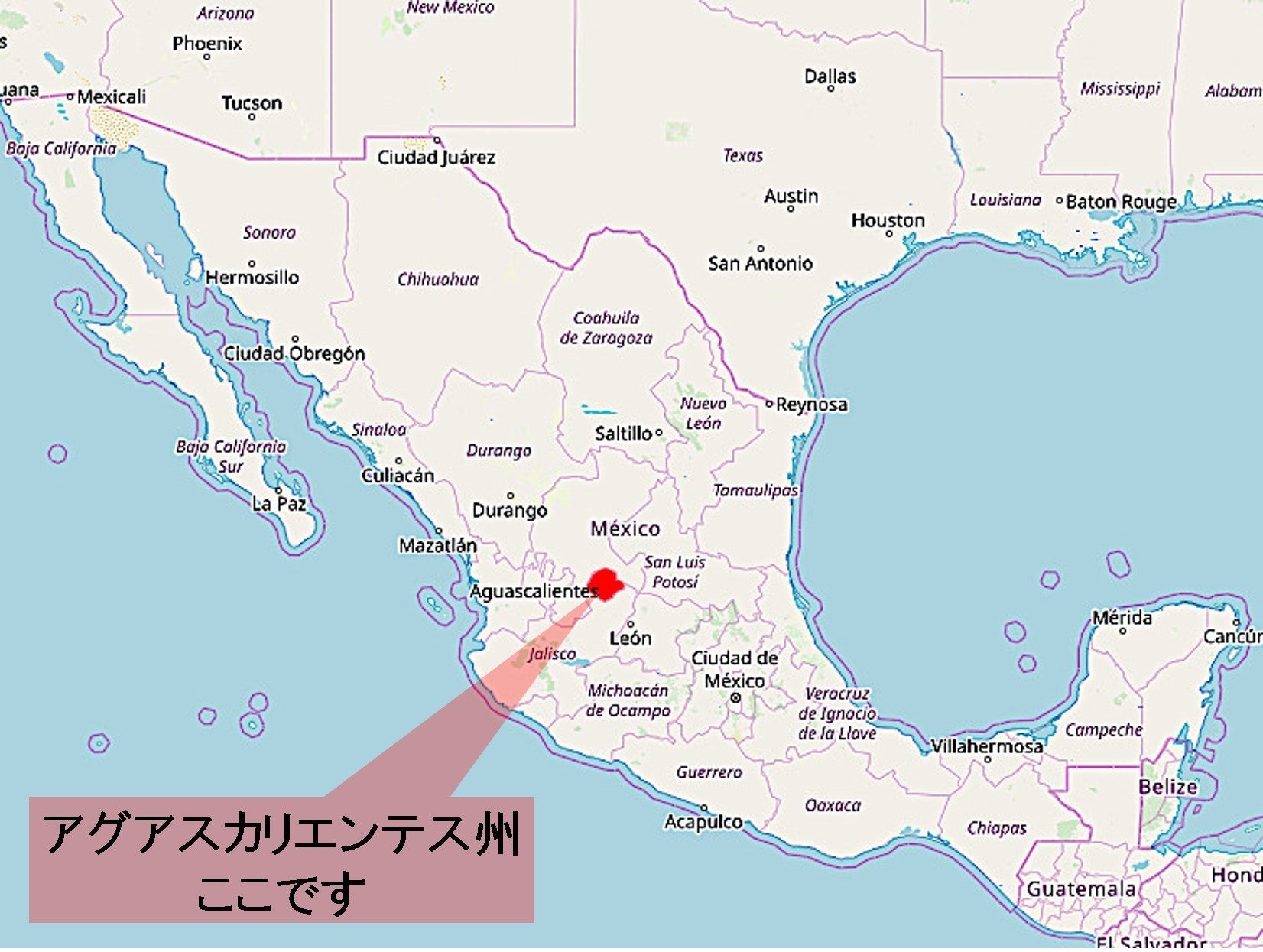 アグアスカリエンテスはスペイン語で「熱い水」という意味で、その名の通り温泉が湧き出る地域として知られています。メキシコの中で4番目に小さい州ですが、国内最大の若手アーティストのコンペティションの開催地であり、メキシコで一番大きな版画の工房があるなど、文化も色濃くアートもとても盛んなところで、美術館や博物館、大学などがいくつもある文化都市です。