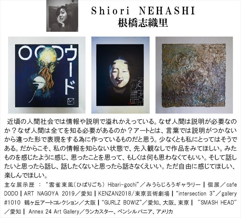 2020年の東京での展示に先駆けて、2019年の今年は日本から石川遊雪、鮫島弓起雄、根橋志織里、古谷由布、渡辺志桜里の5人をメキシコに招き、現地のメキシコ人アーティストと共に展示を行います。