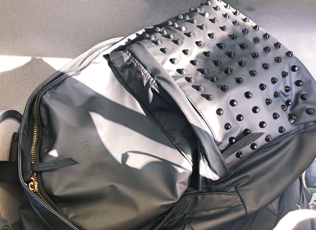 沢山のスタッズで重そうに見えますが、実際はそんなこともなく約525gしかありません。この重さは600mlのペットボトルより100g以上軽く、実際に背負うと非常に軽く感じられるような製品となっています。