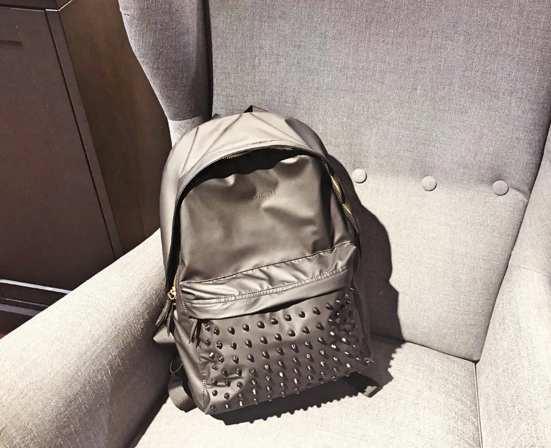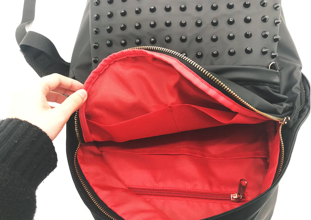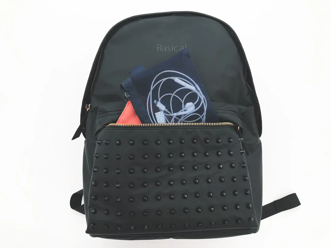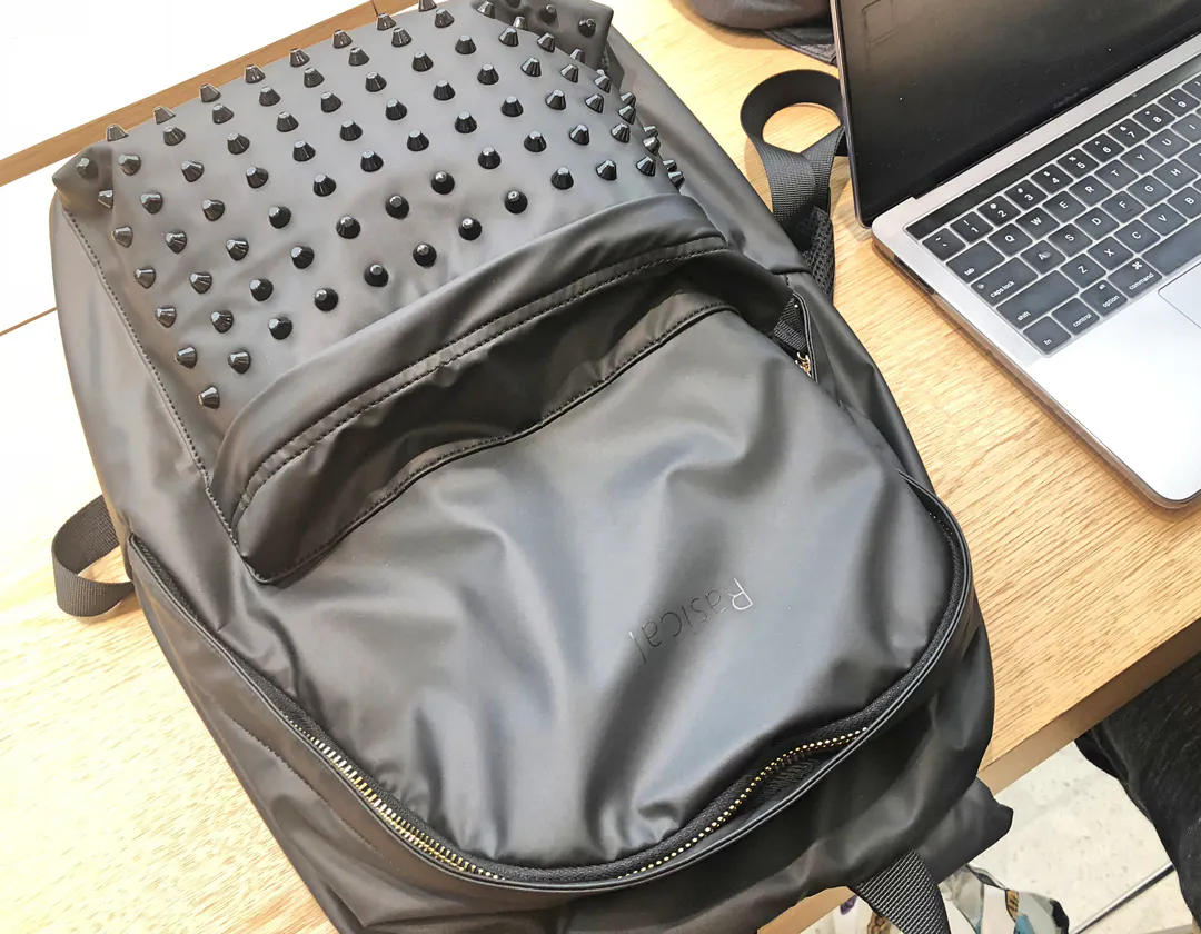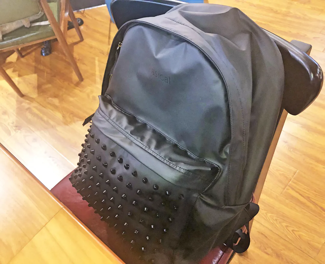 一見どこにでもあるデイパックに見えがちですが、スタッズがついていることで、スパイスの効いた少しインパクトのある見た目に。更に金色のファスナーを使用することにより、ベーシックなリュックより高級感あるようにデザインしました。