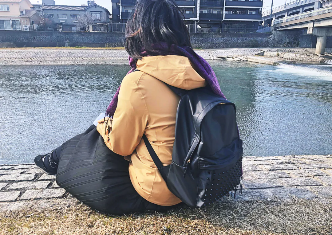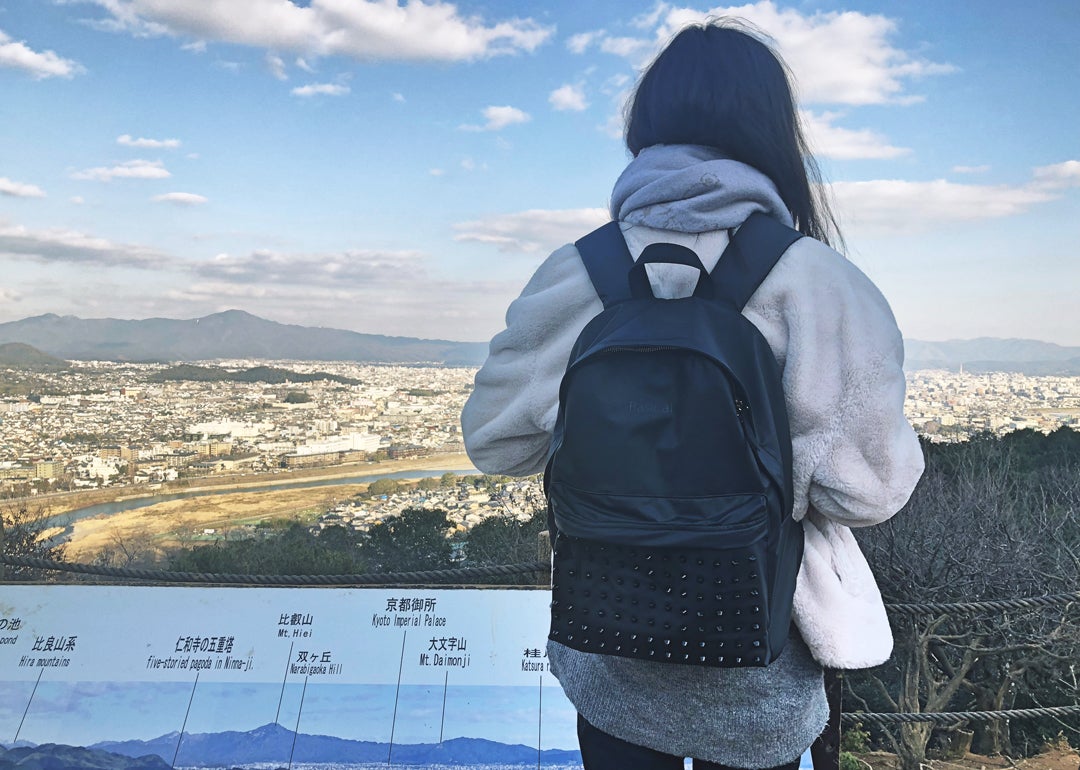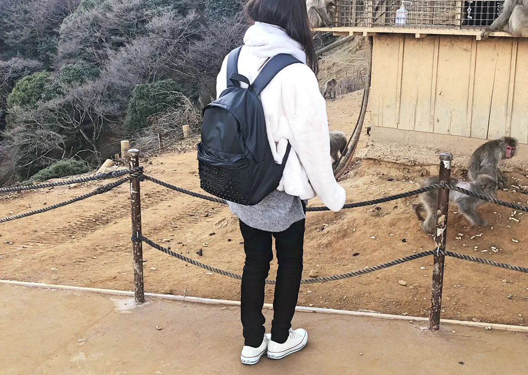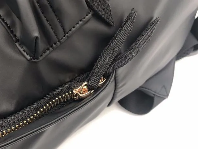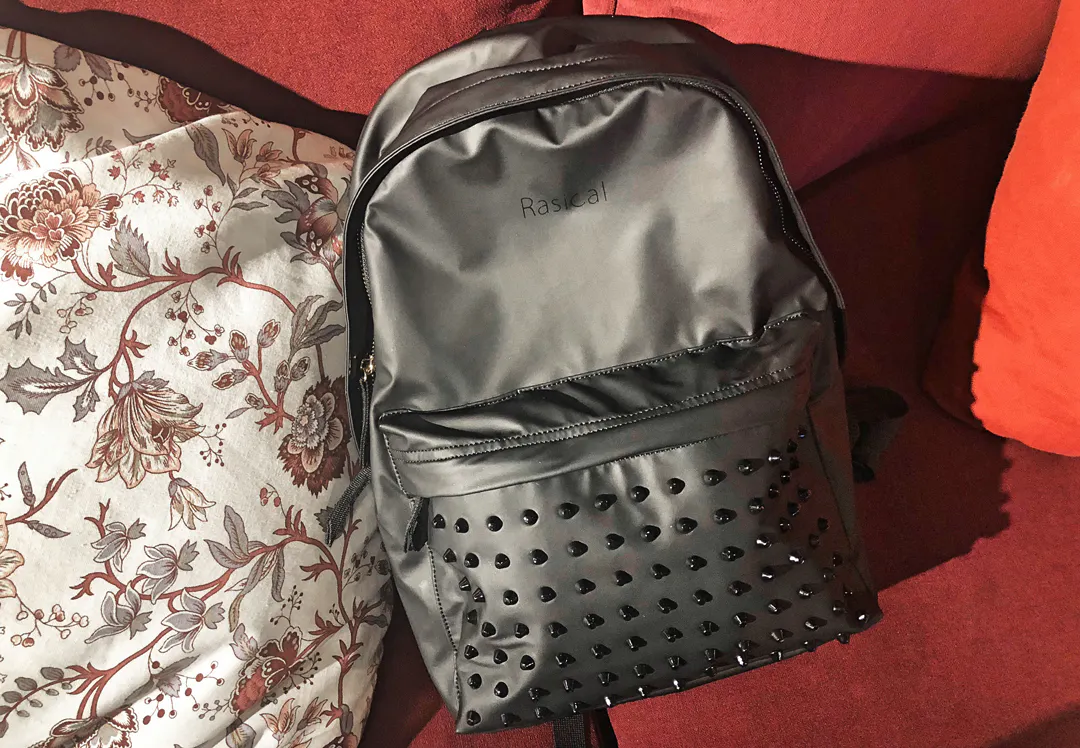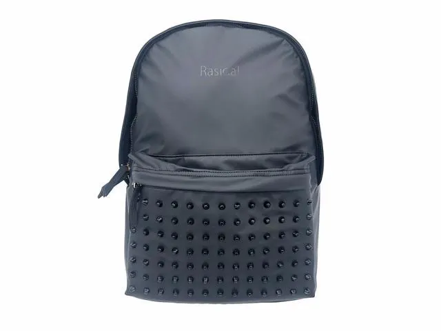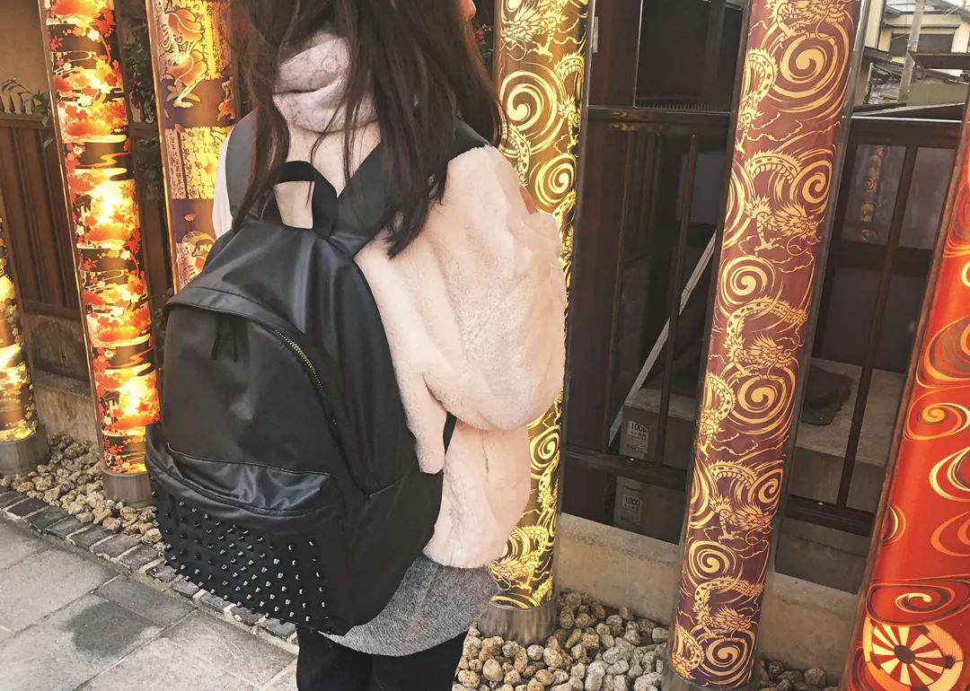 一見どこにでもあるデイパックに見えがちですが、スタッズがついていることで、スパイスの効いた少しインパクトのある見た目に。更に金色のファスナーを使用することにより、ベーシックなリュックより高級感あるようにデザインしました。