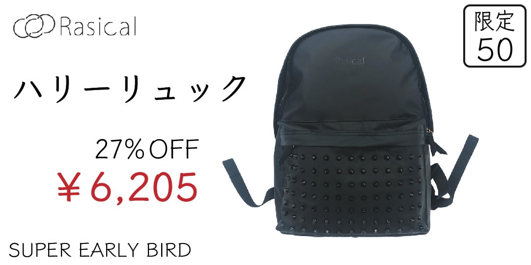 「ハリーリュック」は、ベーシックなリュックサックとスタッズを組み合わた新たな体験を生み出すリュックサック。 500mlペットボトルと同じくらいの軽量さや、防水仕様などスペックにも注目いただきたい製品となっています。