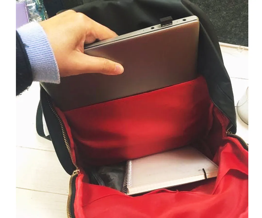 ベーシックなリュックだとなかったりするPCスペースも確保。13.6インチのものまで収納出来るようにしました。