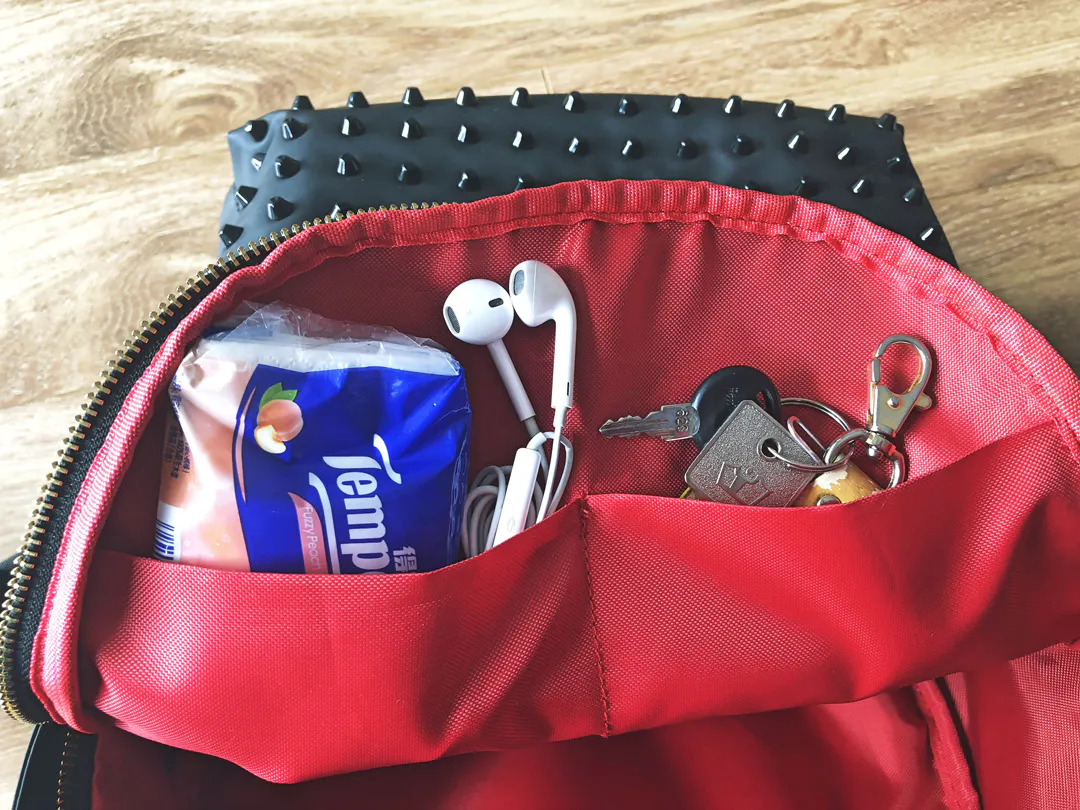 こちらにはポケットティッシュやモバイルバッテリーに加え、地図や案内図など、少し大きめのものでも収納が可能です。