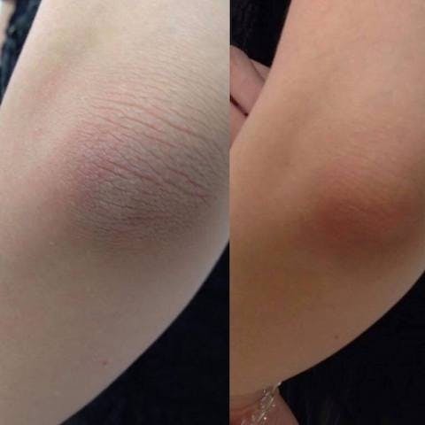 ↑さくら麹ぱうだぁを肘に1回使用した場合 使用前と使用後