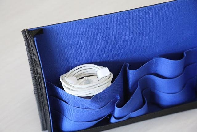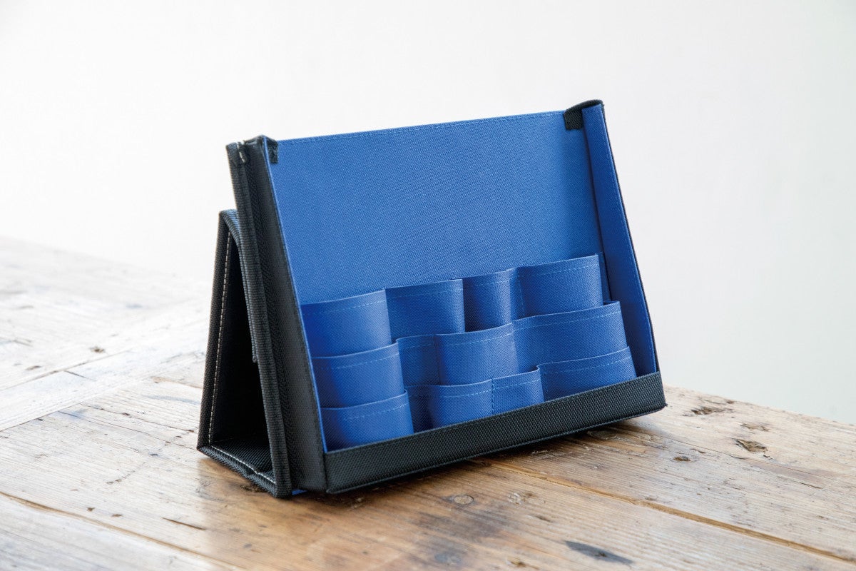 スッと出してスッとしまえる縦型収納は、化粧ポーチ「sussu」に使われていた「青海波ポケット」をもっと他のアイテムに使えないだろうか、と考え、生まれた商品です。