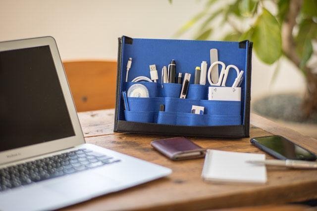 普段デスク周りに置いている 様々なワークアイテムを収納して持ち運べる、