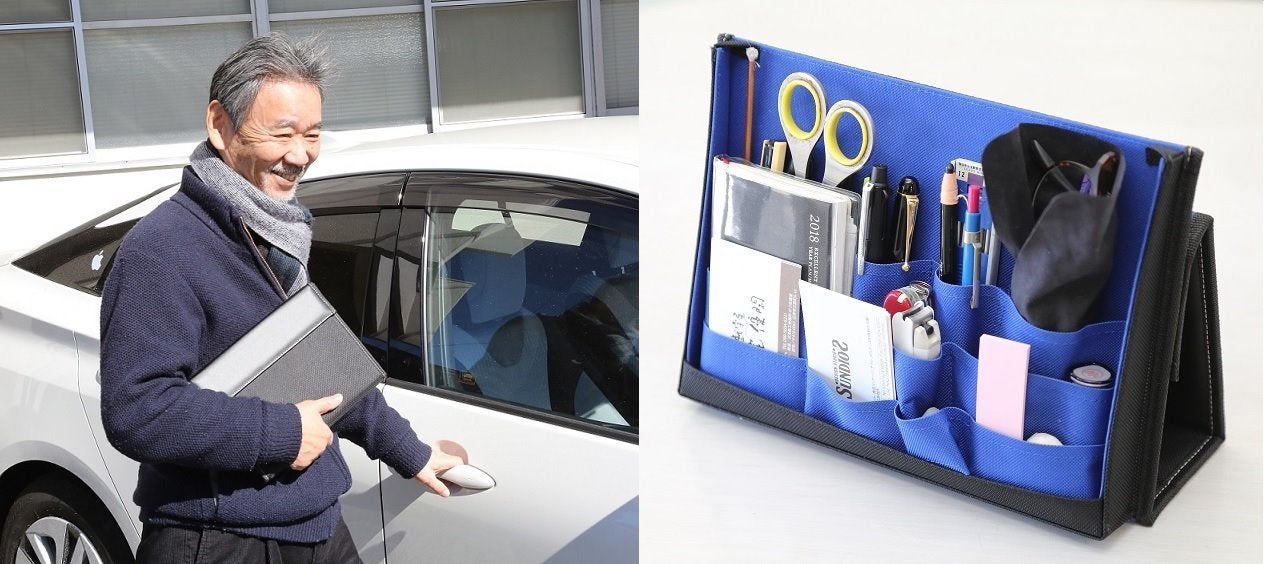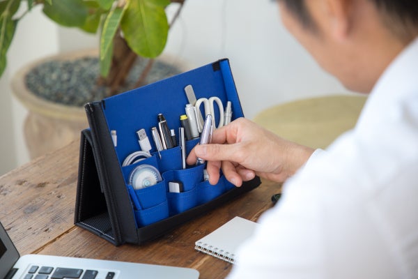 そうか、机の上のものをスッと取り出し、スッとしまえる入れ物があったらいいな、さらにそれを持ち歩けたら、いつでもビジネスをサポートしてくれる道具をどこでも使うことができる。