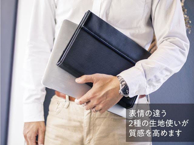 4.上質な合皮使いとステッチで、そのまま 持ち運んでもさまになるクールなデザイン。