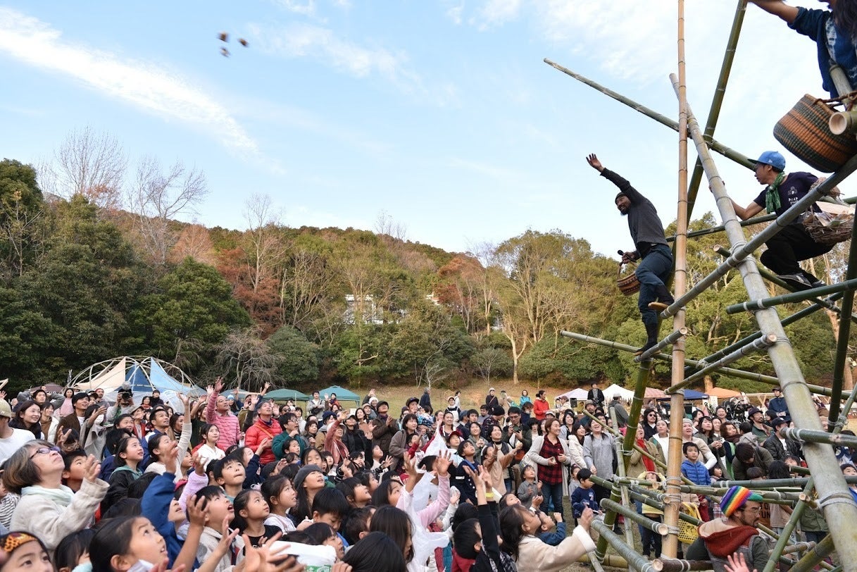 昨年大好評だった餅まき!静岡オーガニックフェスティバル当日、実行委員と一緒に餅まきに参加できます。竹ジャングルジムの上からの餅まきは最高に楽しいですよ!