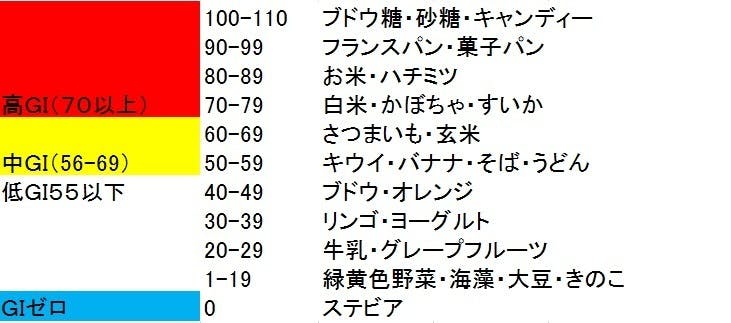 その数値が高いものほど、糖の数値を上げてしまう食べ物となり、一般的なプロテインで使用されているブドウ糖や砂糖はその指数が100を表します。