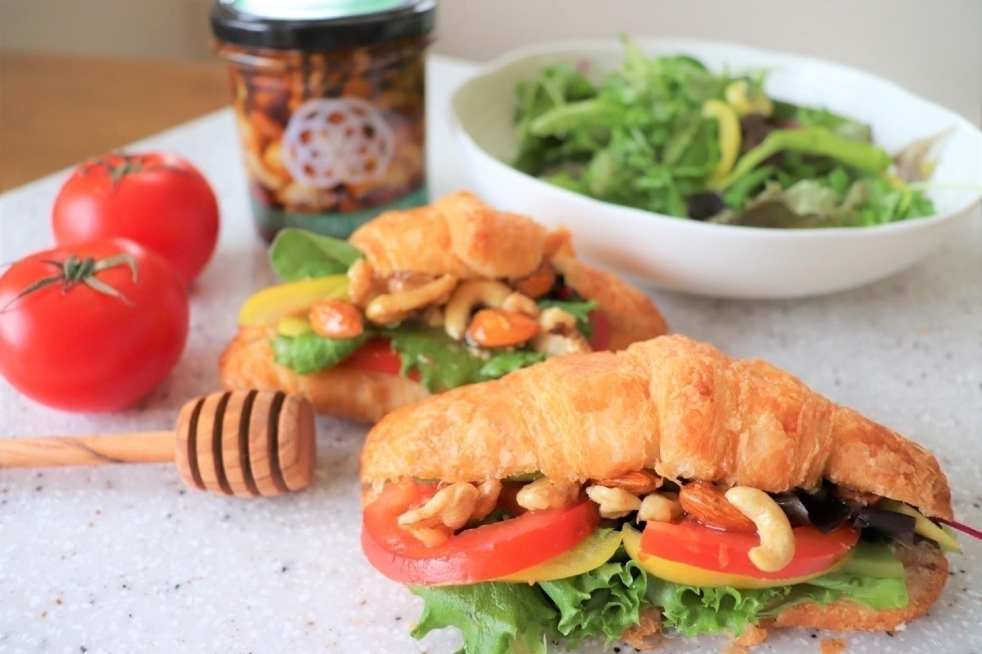 フレッシュサラダ+クリームチーズ+ハニーナッツのクロワッサンサンド