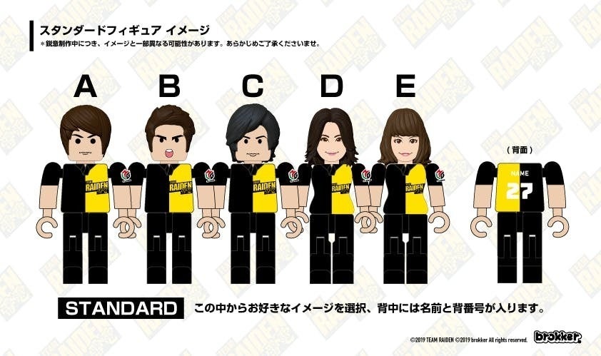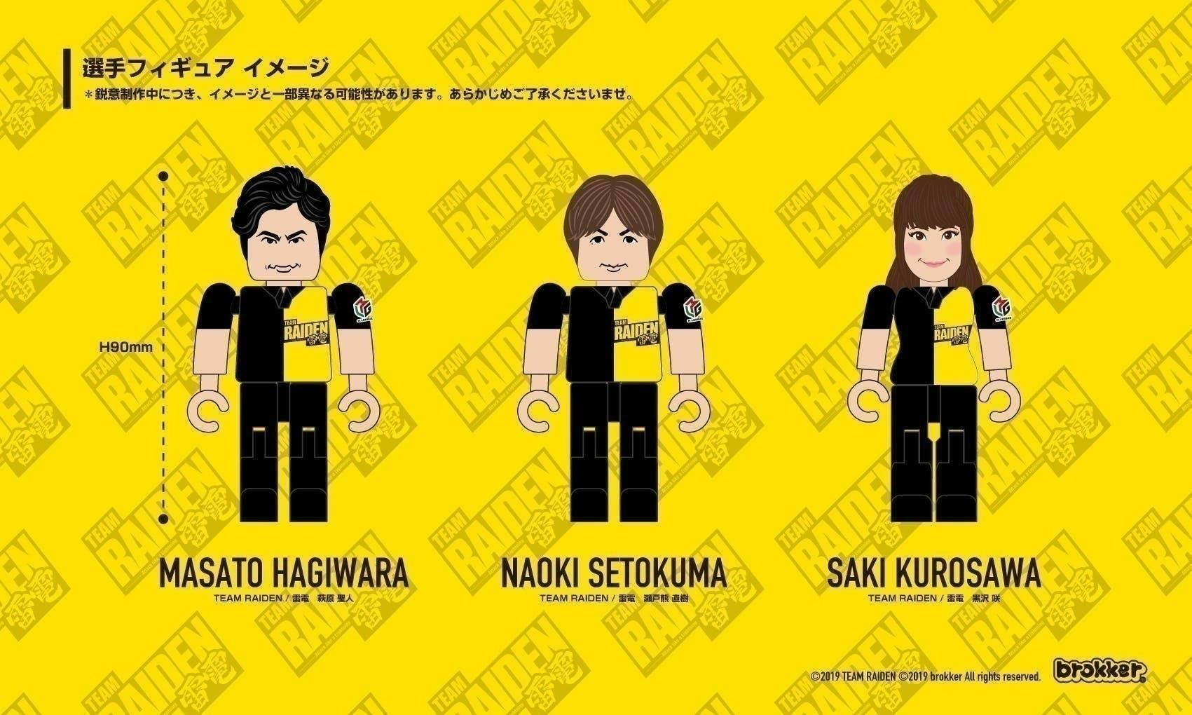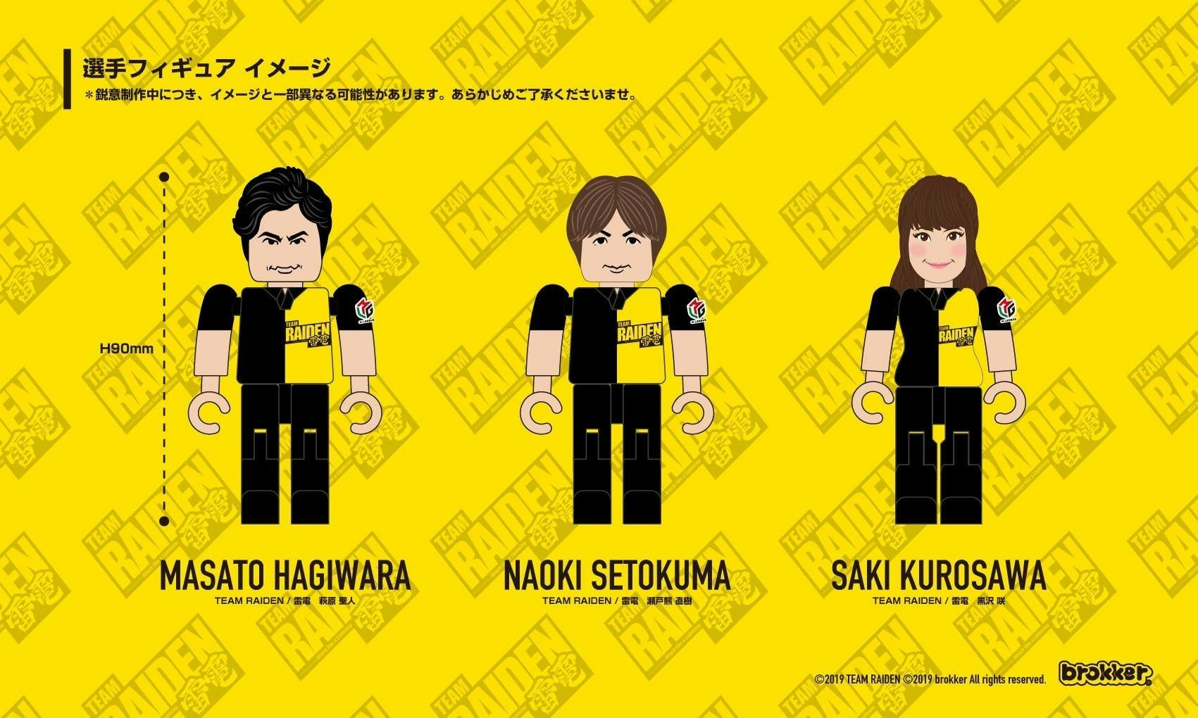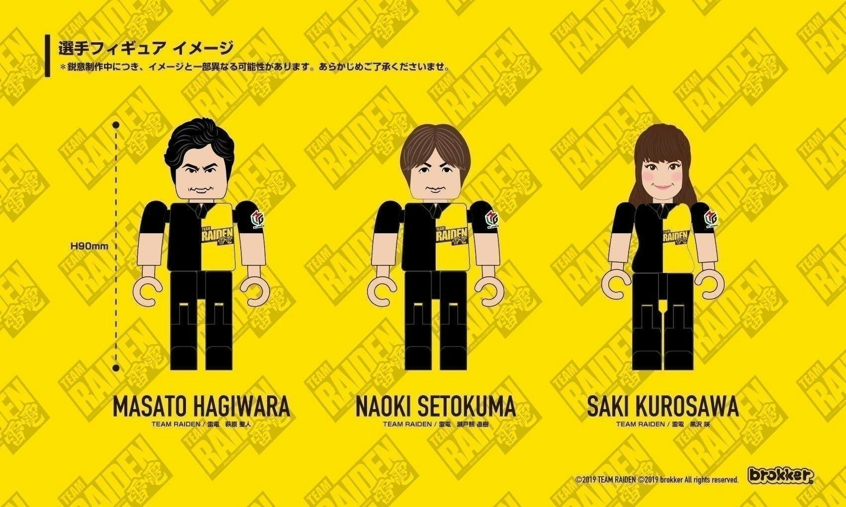 これまでに、国内外を問わず、多くのアーティストのフィギュア制作を手掛けている『brokker』の完全協力の元、チーム雷電の3選手を作成。
