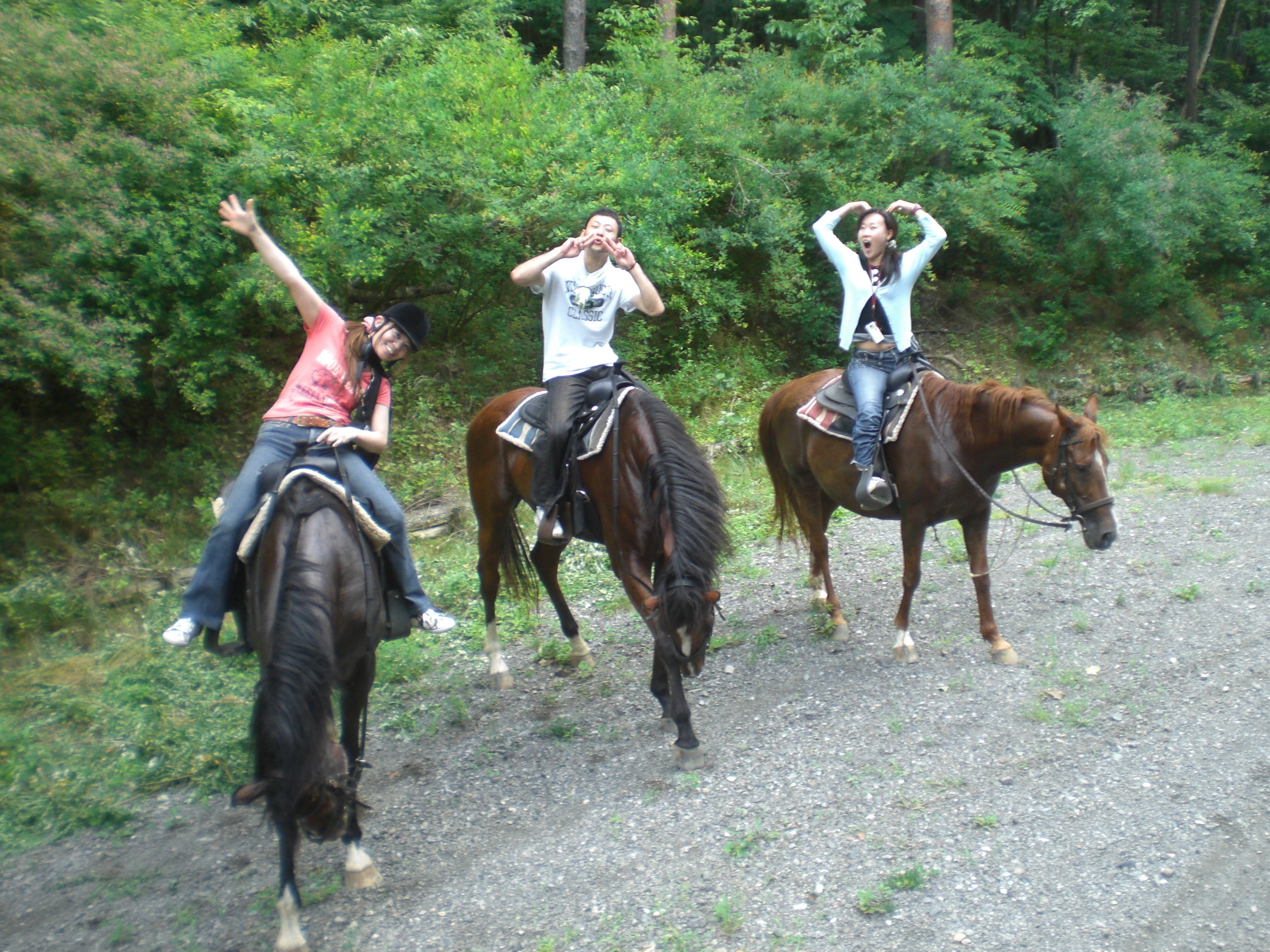 乗馬初体験の方でもOK、山の中の林道を走ってみましょう!