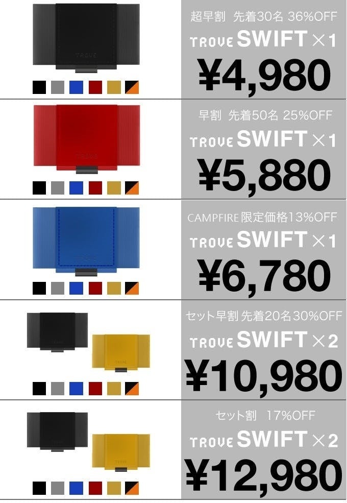 海外クラウドファンディングKickstarterでも約500万円の資金調達に成功し、人気となっている「TROVE Swift」を一般販売前に改めてクラウドファンディングで皆様と盛り上がり、価値を共有できればと思っております。