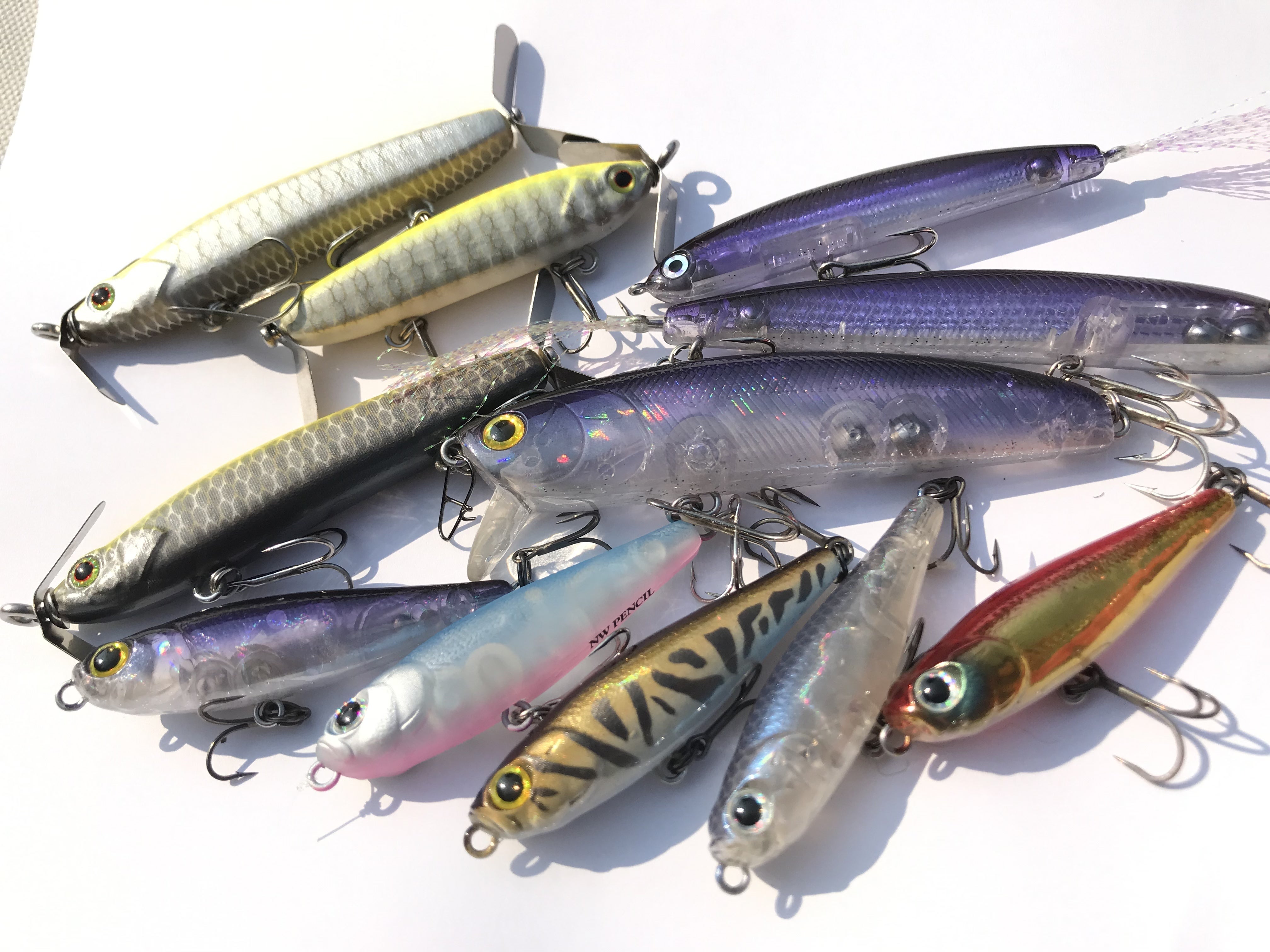 (LUCKがオープンしてから企画したオリジナルカラーのルアーたち)