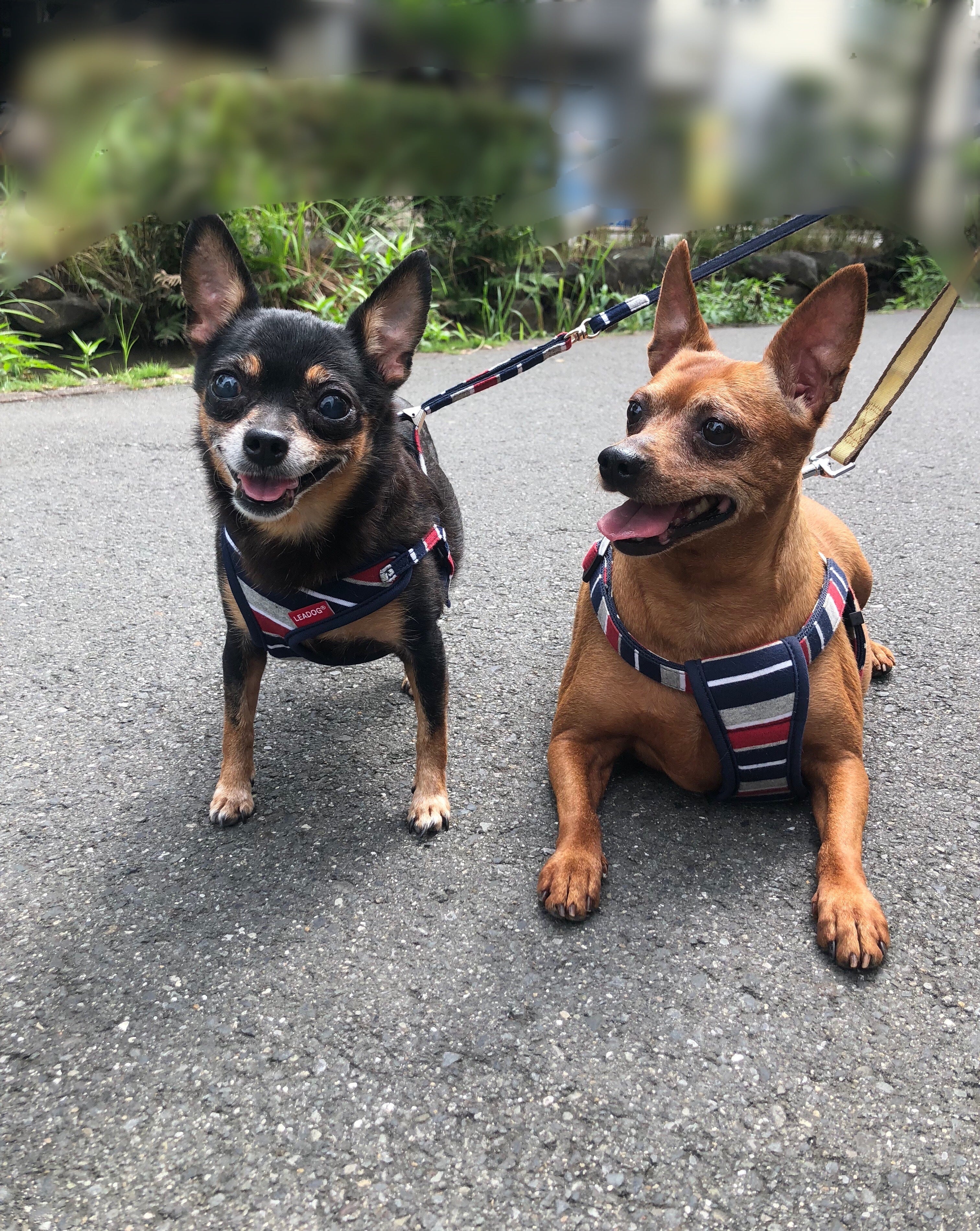 お散歩に連れて行ってもらえてなかったこの子たち。最初は少し外を怖がる仕草があったのですが、今では寝ても覚めてもお散歩のことを考えているような状態です!(^-^;一つ一つ、楽しいと思えることを増やしていってあげたいです。