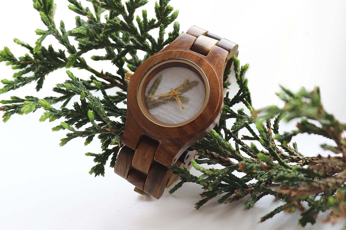 当プロジェクトの日本初モデルは、文字盤に植物を押し花にした天然素材で作られており、より女性らしさ、ナチュラルな雰囲気が強調されたモデルです。