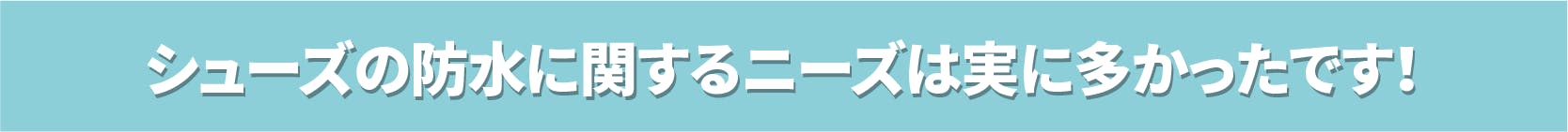 具体的に見てみると、靴下が濡れた時(27%)、濡れたシューズをまた履かなければならない時(14%)、白いシューズを履いたのに雨に降られる時(16%)でなんと全体の57%がシューズに関する内容で、たくさんの方々はシューズが濡れることに対するストレスを感じており、シューズ防水に関するニーズがあったという風に捉えられます。