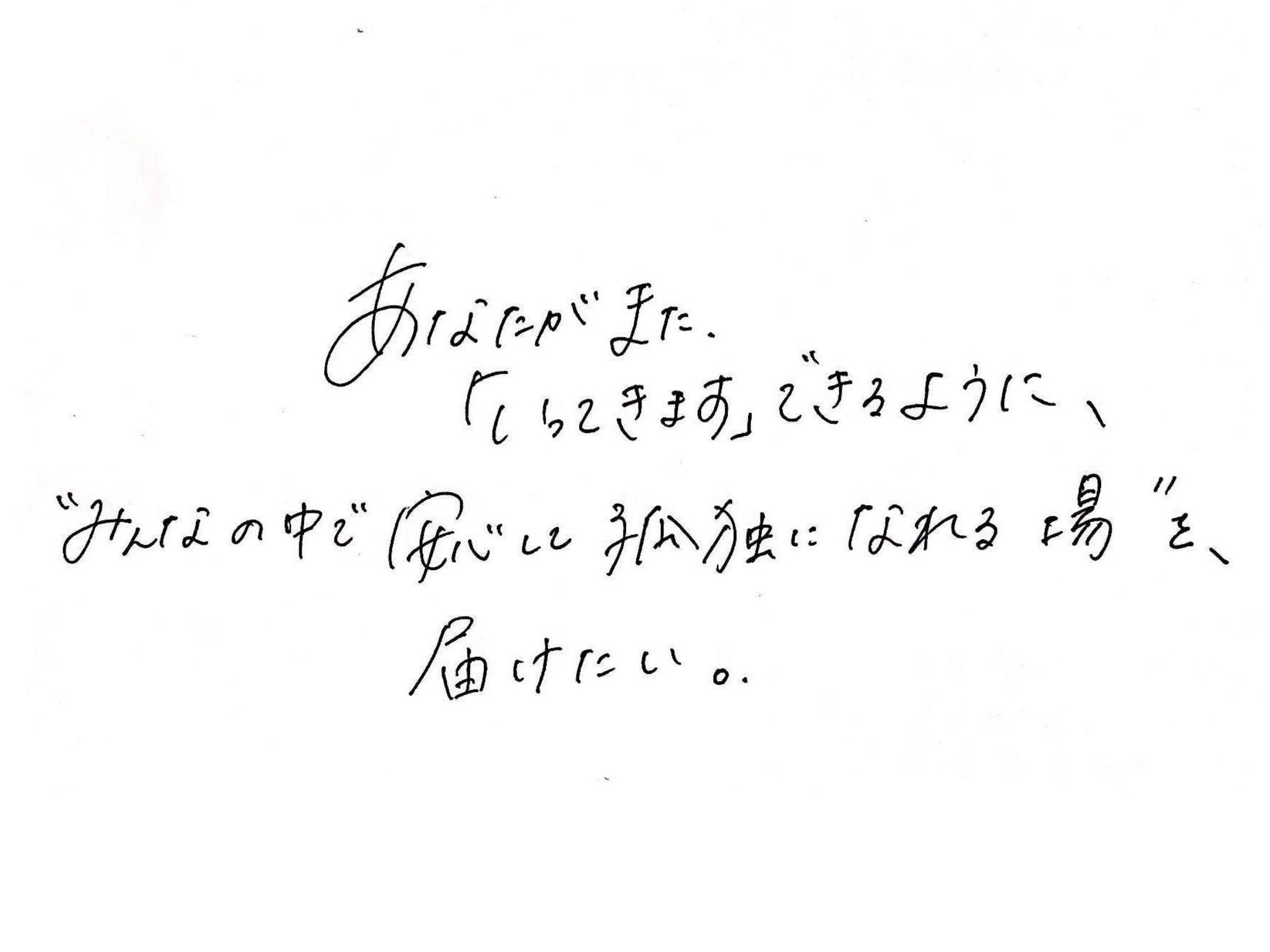 安心して自分にただいまできる。ひとりになれる。