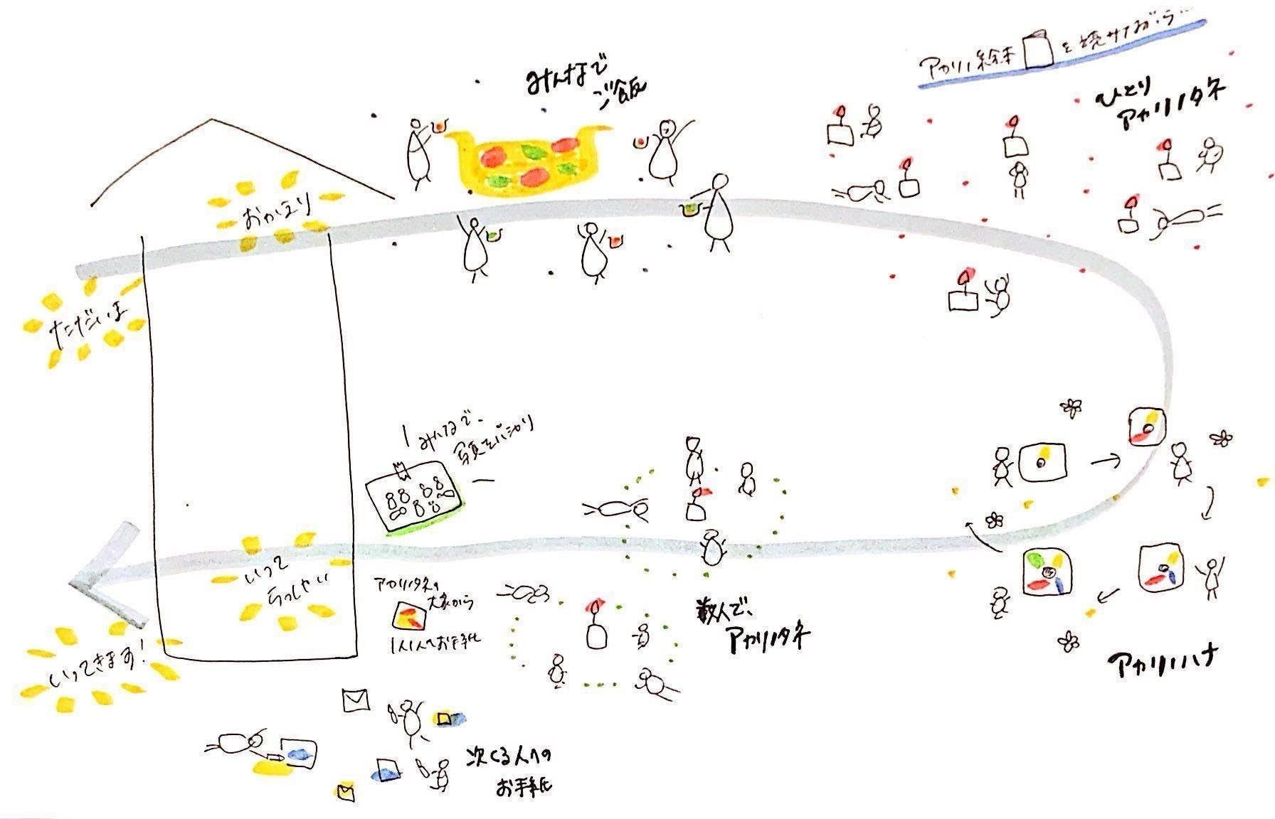 2019/12/29 12:02こんにちは、アカリノタネ大家です!みなさん、年末いかがお過ごしですか?さて、12月15日から21日まで、私たち大家は《アカリノタネ九州ツアー》に行ってきました!宮崎→鹿児島→熊本→福岡→北九州→長崎、とリレーのようにアカリノタネを連続でさせていただいた今回のツアー。きっかけは、鹿児島の空雅さんがクラウドファンディングで【出張アカリノタネ】を支援してくれたことから始まりました。「ぜひ、鹿児島に!」出張アカリノタネをご支援いただけた瞬間のことは、今でも覚えています。びっくりしてうまく言葉にできず、サンマルクで叫んでしまいました。そこから、宮崎のCAMPFIREの岩切さんが「宮崎と長崎でも!」と声をかけてくださり、福岡のひかりさんに連絡したらとっても素敵な会場を福岡、北九州と提供してくださったり、ひかりさんのご紹介で熊本をアテンドしてくださる優さんと出会えたり…気がついたら、「あれ、これ九州一周しちゃうじゃん!」という、自分たちでは考えられないほどのツアーが出来上がっていました。そして、「九州の大好きな人たちのところへ、アカリノタネの大家として回りたい!」と東京から名乗りをあげてくれたあかりん。今回は、大家3人で九州へ伺いました!ほとんどが「はじめまして」の人たち。でも、みんなが「いらっしゃい」と迎えてくれ、お別れをする頃には「いってらっしゃい」と送り出してくれる。その優しさとあたたかさに包まれて、大家はのびのびとアカリノタネをさせていただきました。12月15日 宮崎県宮崎市 若草HUTTEスタートの地、宮崎。アカリノタネのアイドルこと岩切兄、素敵なキャンドルでご協力いただいた黒木さん、大好きなみさとお姉ちゃんと、普段とはちょっと違う、「キャンドルから始まってキャンドルで終わる時間」を紡いでみました。商店街の路地を入ると、小さなアカリが灯るカフェ。ちょっと不思議な、でもどこか懐かしいような、そんな時間になったかな。大家3人は、「安心とは何か」ということを改めて考えた夜でした。宮崎のみなさん、ありがとうございました!12月16日 宮崎から鹿児島へ「こんなに幸せなお昼ご飯、食べたことない…」おいしいものをたくさんいただいて、次の場所、鹿児島へ。「いらっしゃ〜い」と迎えてくれたのは、空雅さん。実はこの瞬間が「はじめまして」でした!岩切兄とは、一旦お別れ。また長崎で…!12月17日 鹿児島県鹿児島市 マイセカンドキッチン鹿児島では、「手をつかう、手で繋がる」ということをテーマに、がんちゃん(コミュニケーション料理人)と時間を紡ぐことができました。普段何気なく使っている”手”や”素材”。様々ないのちのあたたかさに支えられて私たちは生きているんだなぁ、と感じながら過ごす時間。一見非日常にも感じられるこの時間こそが、「生きる」ということなのかもなぁ、と大家はゆっくりした時間の中で考えていました。今回、鹿児島でできたもう一つの挑戦。それは、「おかえりなさい、を届けたい」と空雅さんに伝えることでした。「アカリノタネの大家として、空雅さんをお迎えしたい」という願いを伝えてみようよ、と夜中に電話で背中を押してくれたのは、がんちゃんでした。そして、みんなで綴ったお手紙を届けてみたところ…こんな素敵な呟きが。こうして、アカリノタネ鹿児島での小さな挑戦はあたたかなお守りとなって大家の心に刻まれました。がんちゃん、空雅さん、本当にありがとう。次の日の朝、空雅さんとお別れをし(大家はバスの中で号泣)向かったのは、熊本!…のはずが、あれ、熊本じゃない!?!?まだまだアカリノタネ九州旅は、続きます! もっと見る