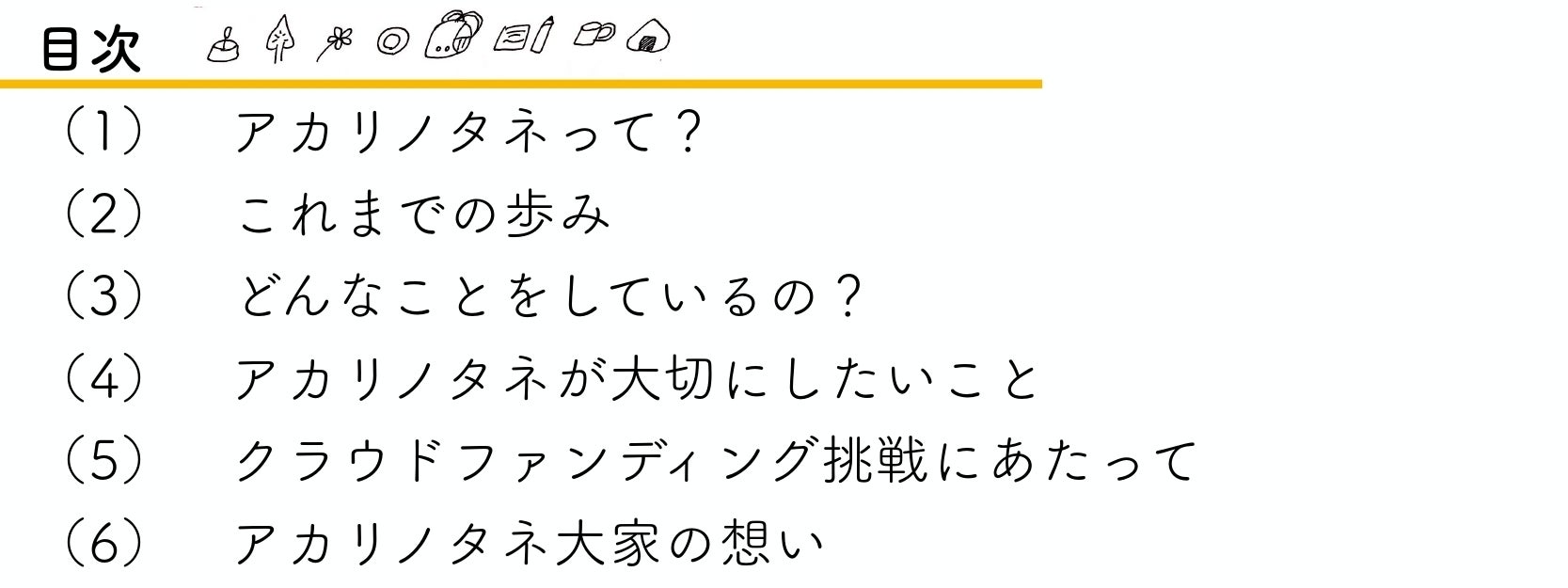 また、クラウドファンディングでのリターンという形を通して、様々な関わりしろを提示したいと思っています。「一緒につくる」「見守る」「ゆるく関わる」など、アカリノタネという媒体をきっかけにいろんな関わり方を作っていけたら、と思っています。