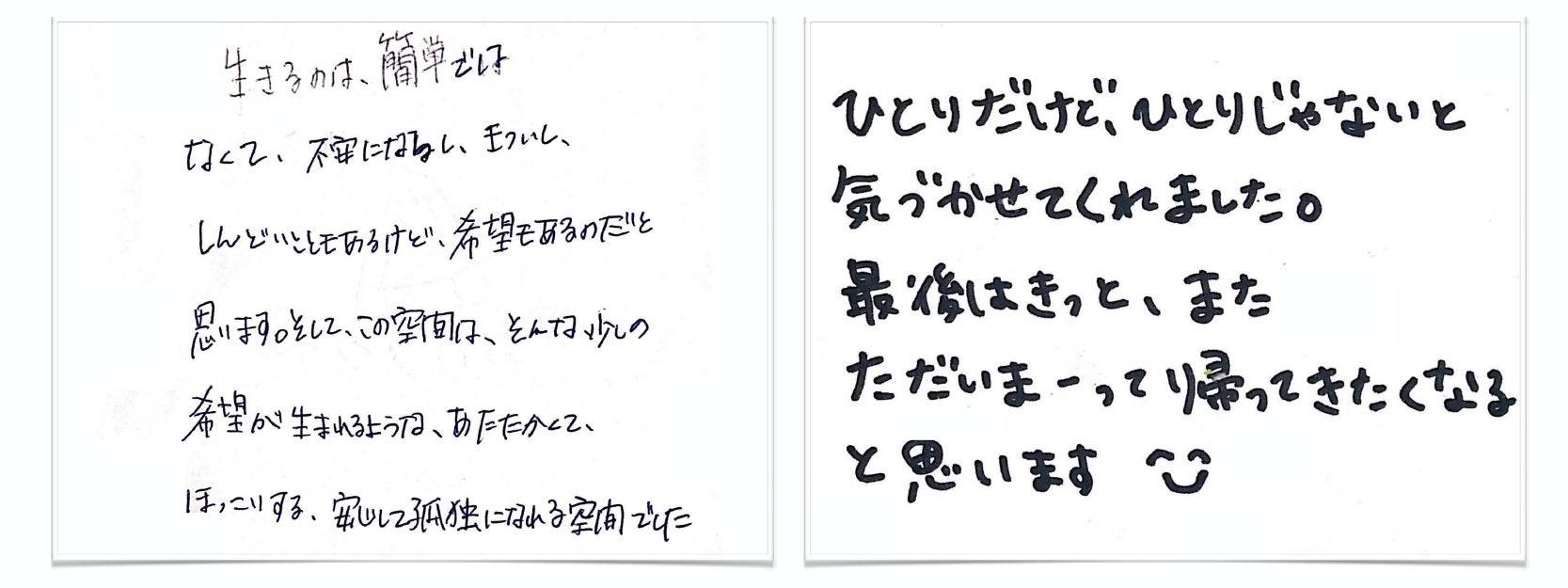 何かを評価する場ではなく、「存在しているんだね」「私もあなたも人間だよね」というコミュニケーションを、大切にしたいなぁと感じています。