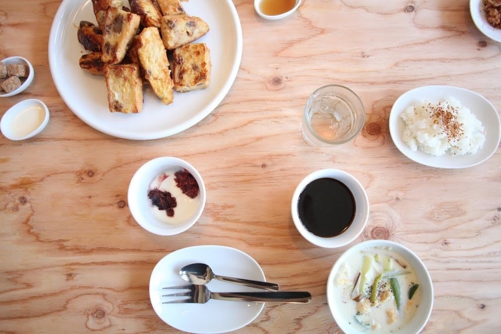 山ノ家 開業準備中のスタッフまかない朝ごはんの食卓。