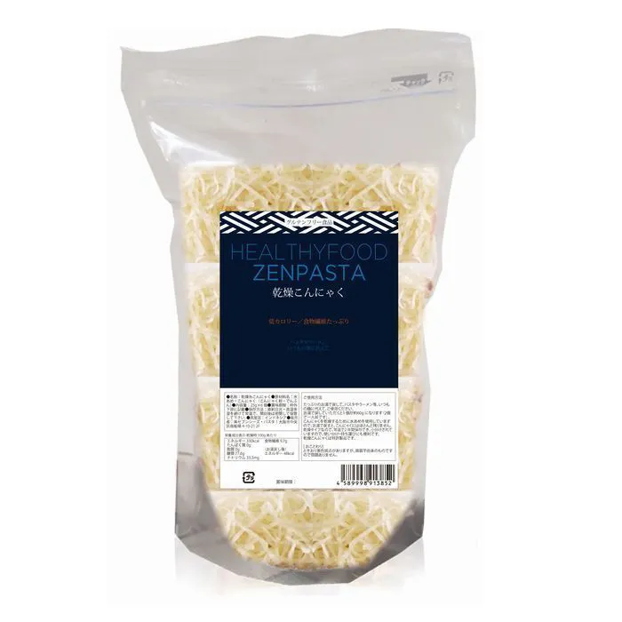 ●名称:乾燥糸こんにゃく●原材料名:水あめ・こんにゃく(こんにゃく粉・でんぷん)●賞味期限:製造日より2 年●保存方法:直射日光、高温多湿を避けて常温で、開封後は密封して保存●原産国名:インドネシア