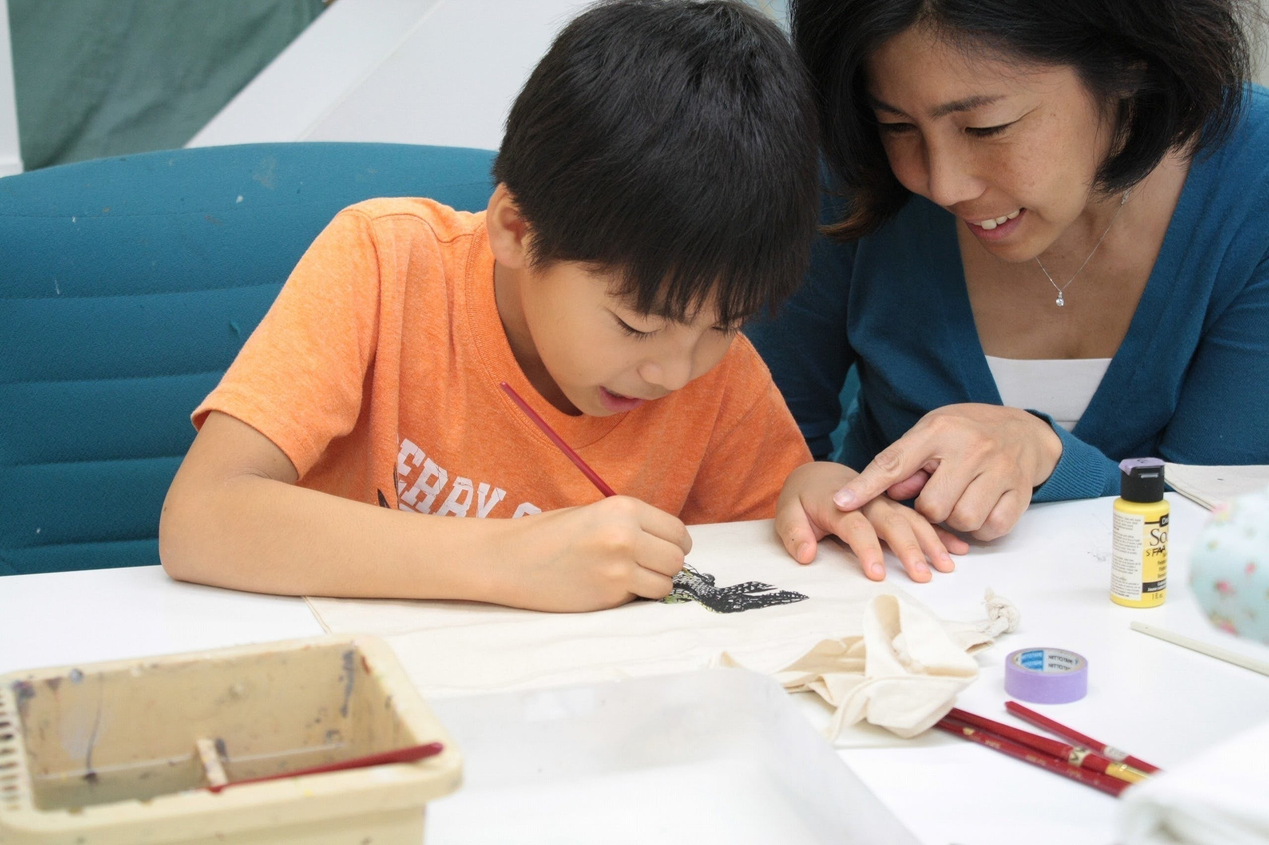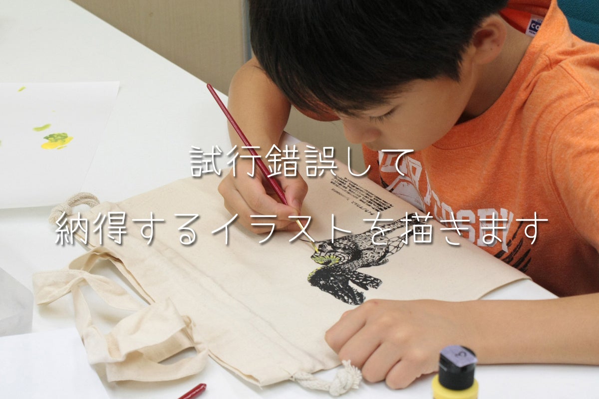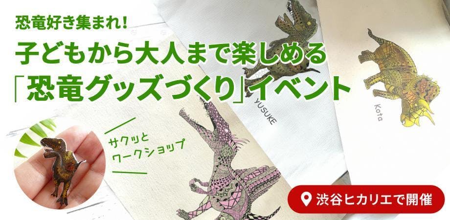 名前入りサコッシュや、カワイイ恐竜ピンバッジをタモとコタモと一緒に作りませんか?コタモに恐竜の事、なんでもきいてください。