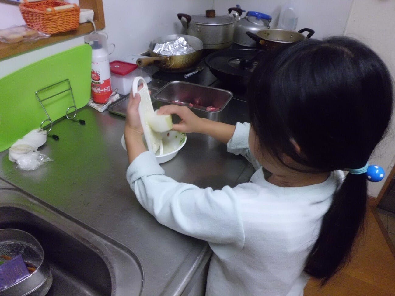この日は、和風ステーキ用の大根おろしを擦ってくれています!(指が恐い、、、)