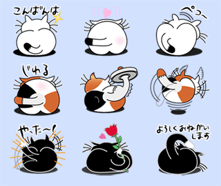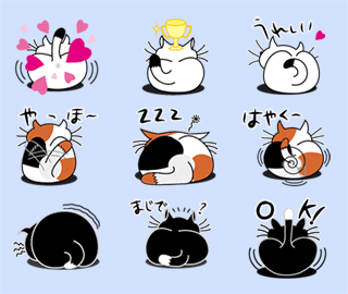代表的な猫である、白猫、黒猫、三毛猫のイラストデザインシリーズです。