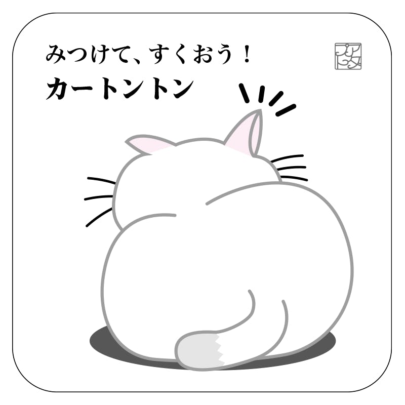 カートントンは、猫たち小動物が車のエンジンルームなどに入り込んで死んでしまう!悲惨な事故を防ぐための啓発運動と、その輪を広げるステッカーです。