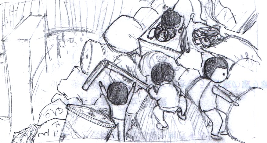 どこかの家の壁の裏に小人さんが住んでいて、お菓子の箱や空き瓶などどこにでもあるガラクタが巨大建造物だったり謎の遺物だったりする世界で大冒険するシリーズのゲームやグッズを作っています。
