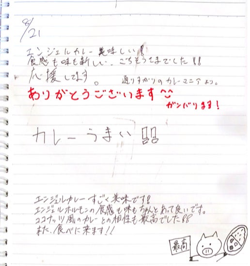 料理長が考案した、エンジェルホルモンをふんだんに使ったカレーがとても美味しいため、新しいメニューとして試食会をしたところ大好評になりました。
