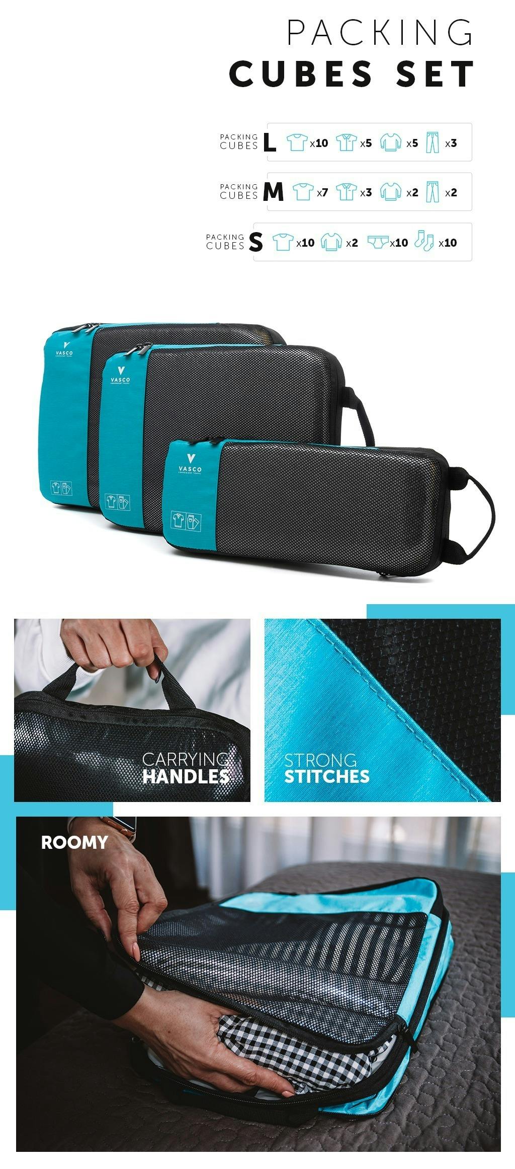 この新しい「VASCO」は、旅行中の荷物のパッキングを簡単にする9つの機能的なバッグ/パッキングキューブです。