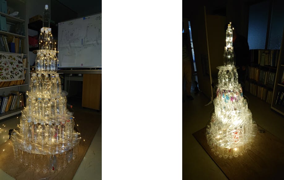 沼津市内の園児たちと協力をして、ペットボトルツリーを作成します。