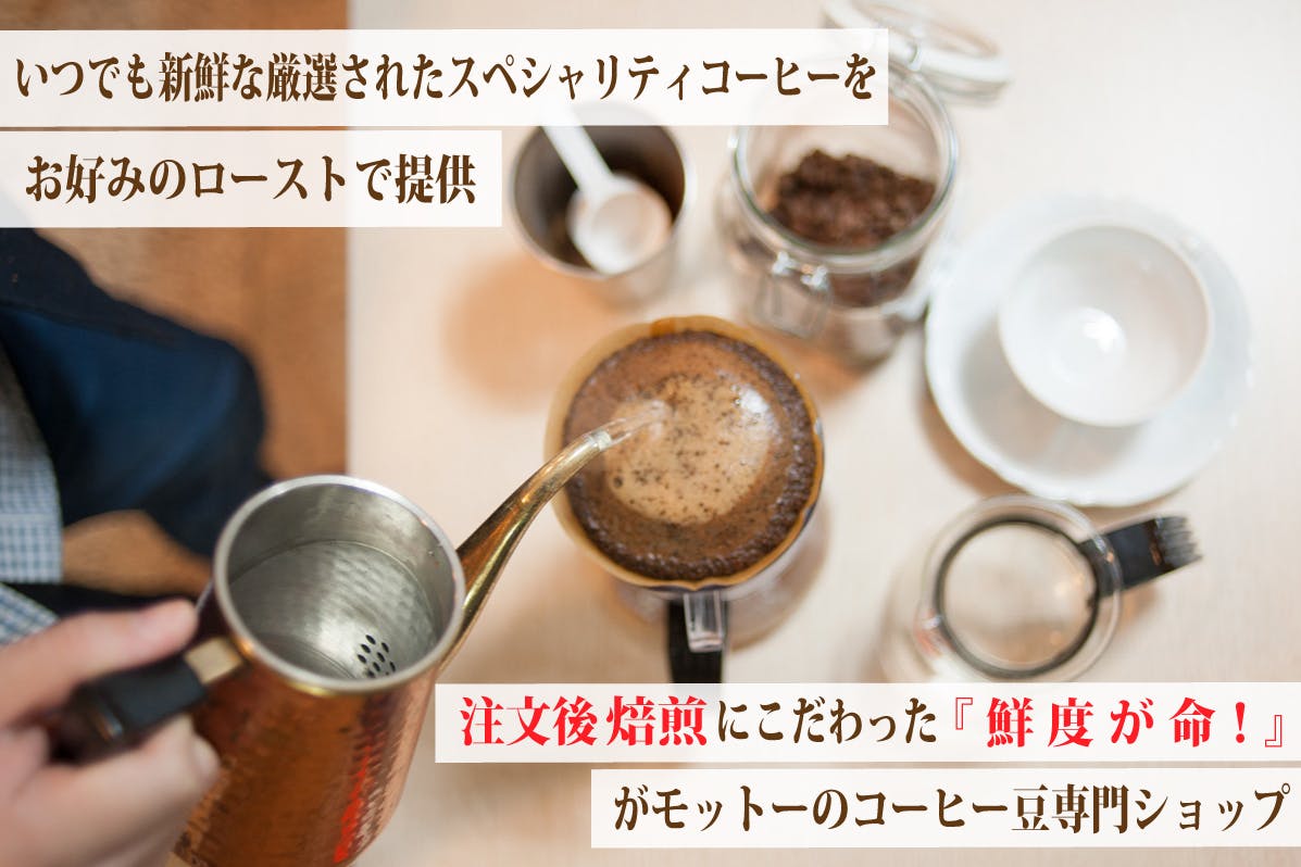 店頭での生豆販売や注文後、お好みのローストで販売が可能なコーヒー豆専門ショップとして、