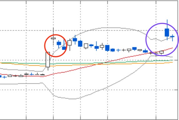 2019/07/26 07:23例えば、画像のような日足(日単位にローソク:1日の上下を表示したもの)で、赤まるの箇所のように一気に上がった場合、「窓を閉める」と言う言い方をするんですが、そのまま上昇しないで(赤まるの最後の方のように)上がった分を隙間を埋めるように下降するわけです。では、紫のまるの部分はどうなるか?ここで買ってくださいとか、売ってくださいとか、そう言うことを書くわけではありません。赤の例(窓埋め)があるのなら、紫もあり得る。つまり危険ですよ!と警告する。そう言うものを作りたいのです。嘘でも儲かる例を書いた方が皆が飛びつくのでしょうが、シニア世代の資金は簡単に無くせないもの、そこを守りたい。そう言う思いを込めたノウハウ集なのです。 もっと見る論文でも作るように、骨子を考えています。