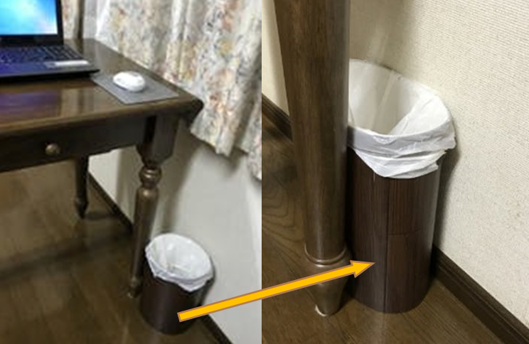 ・机の近くのゴミ入れは足元の邪魔にならない少し離れている場所に置いています。