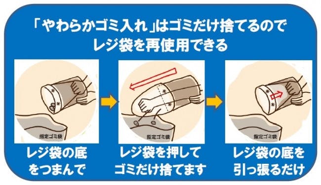 「やわらかゴミ入れ」を使っている人はレジ袋ごとゴミとして捨てずに、ゴミだけ捨ててレジ袋は再使用して行動している人です。小さい事でも行動することで大きな変化に繋がります。